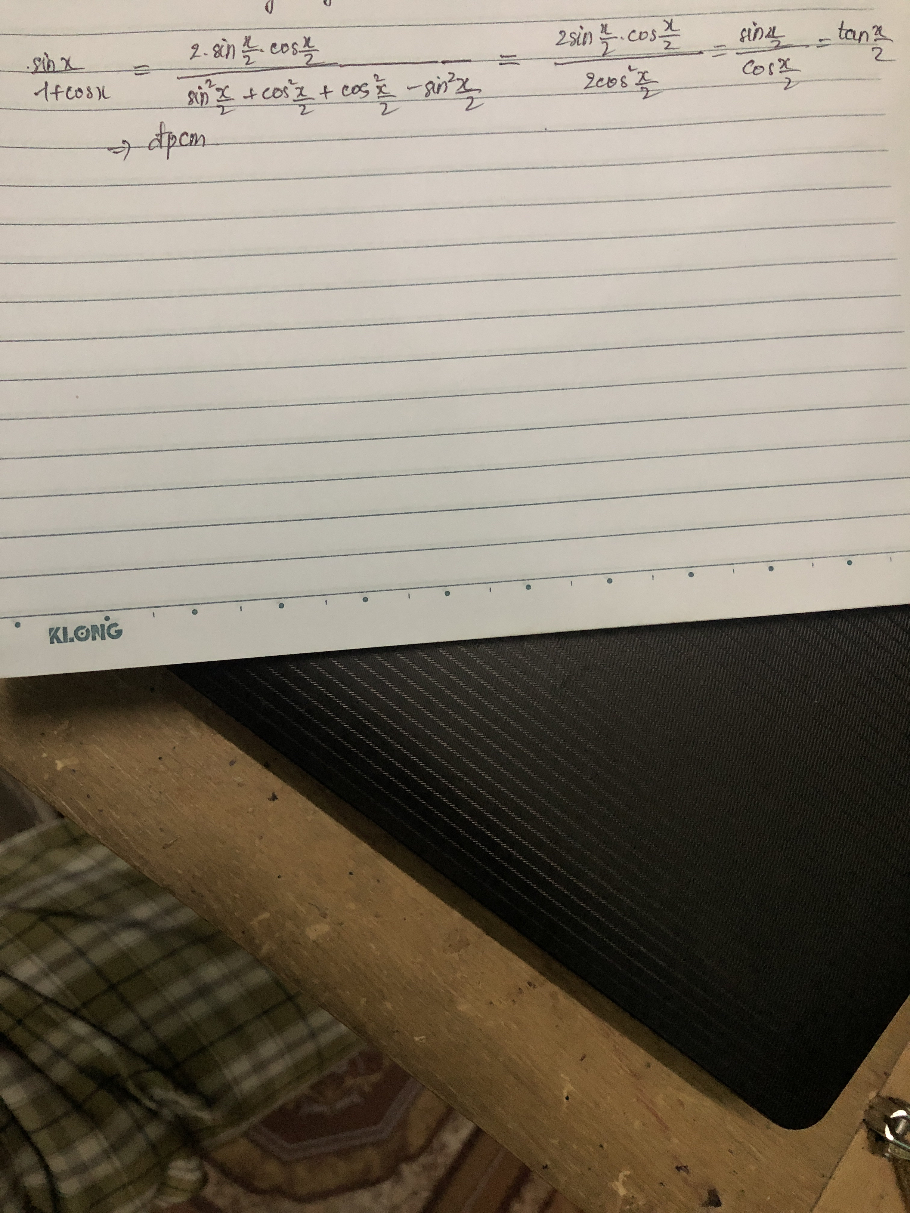 Chứng minh: sinx/1+cosx=tan x/2