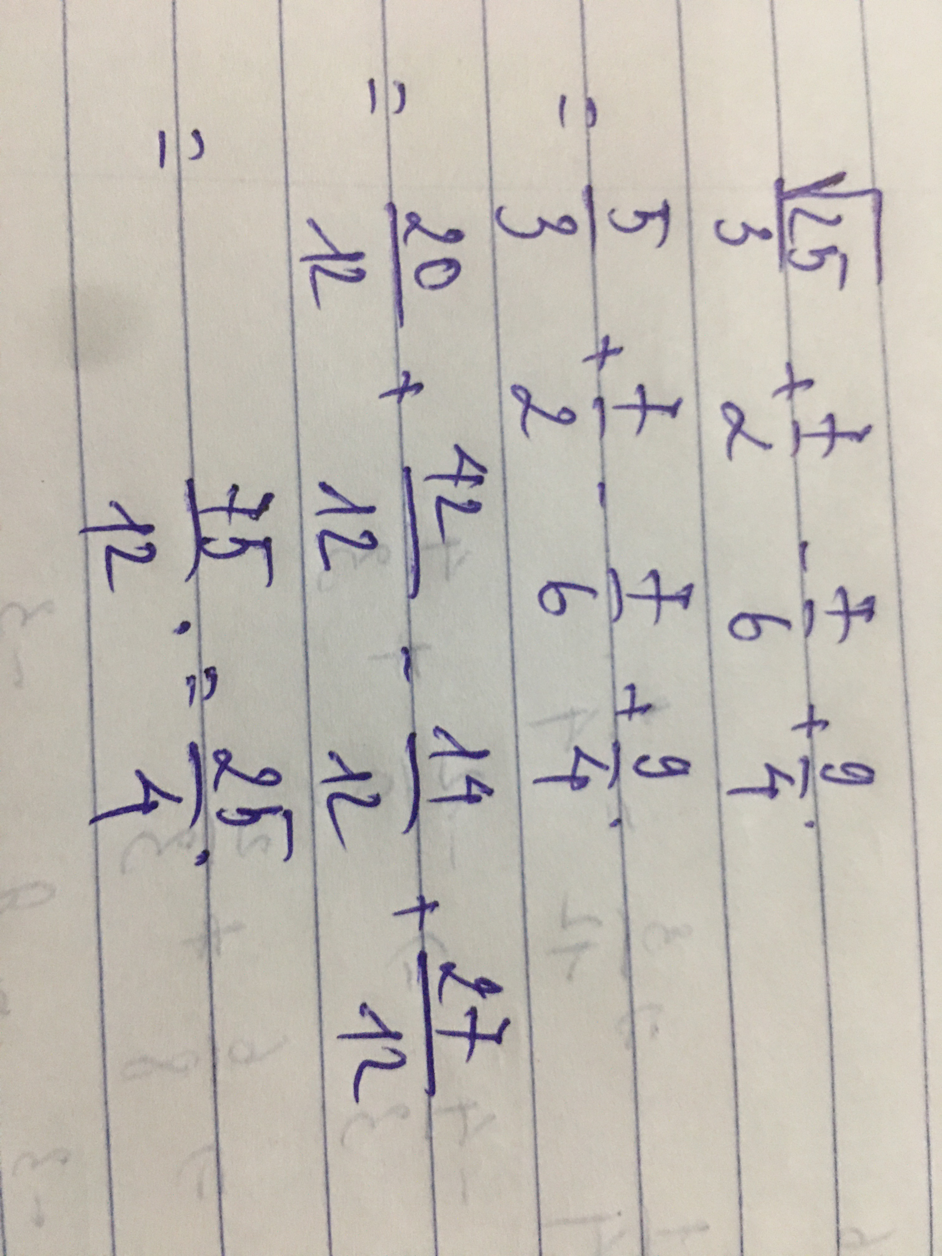 √25/3 +7/2 - 7/6 + 9/4 giúp mình với ạ ( /=phần)