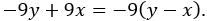 - Từ cặp thứ hai ( -9y + 9x), đặt -9 ra ngoài: