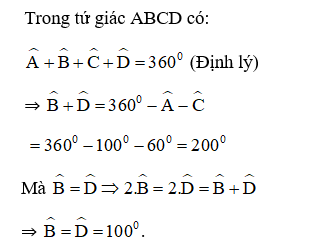 b, Góc B= góc D = 100 độ