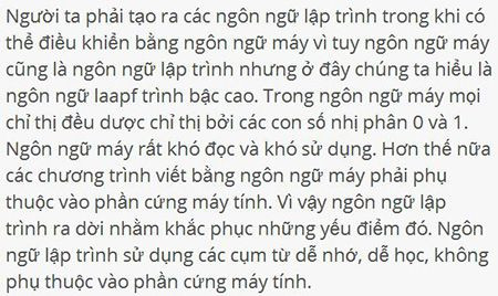 Ngôn ngữ lập trình sử dụng các cụm từ tự nhiên nên d