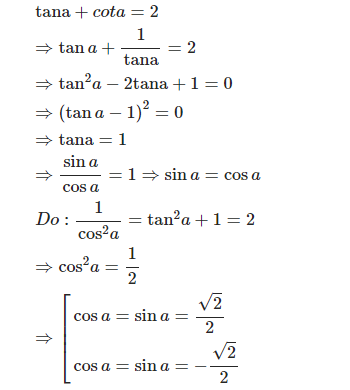 tan alpha+ cot alpha=2. Tính sin alpha + cos alpha