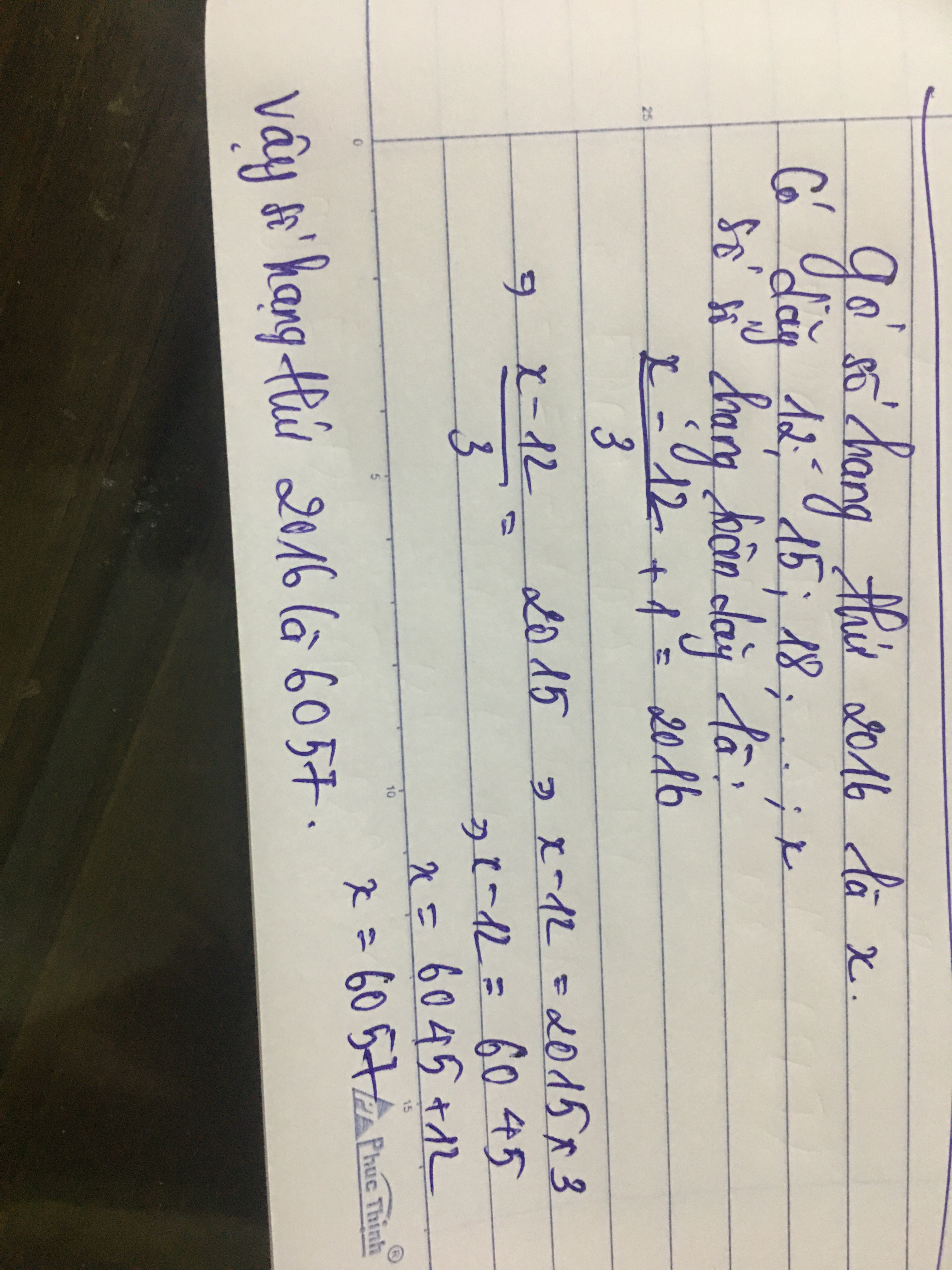 Tìm số hạng thứ 2016 cua dãy số cách đều sau 12 15 18 21 24