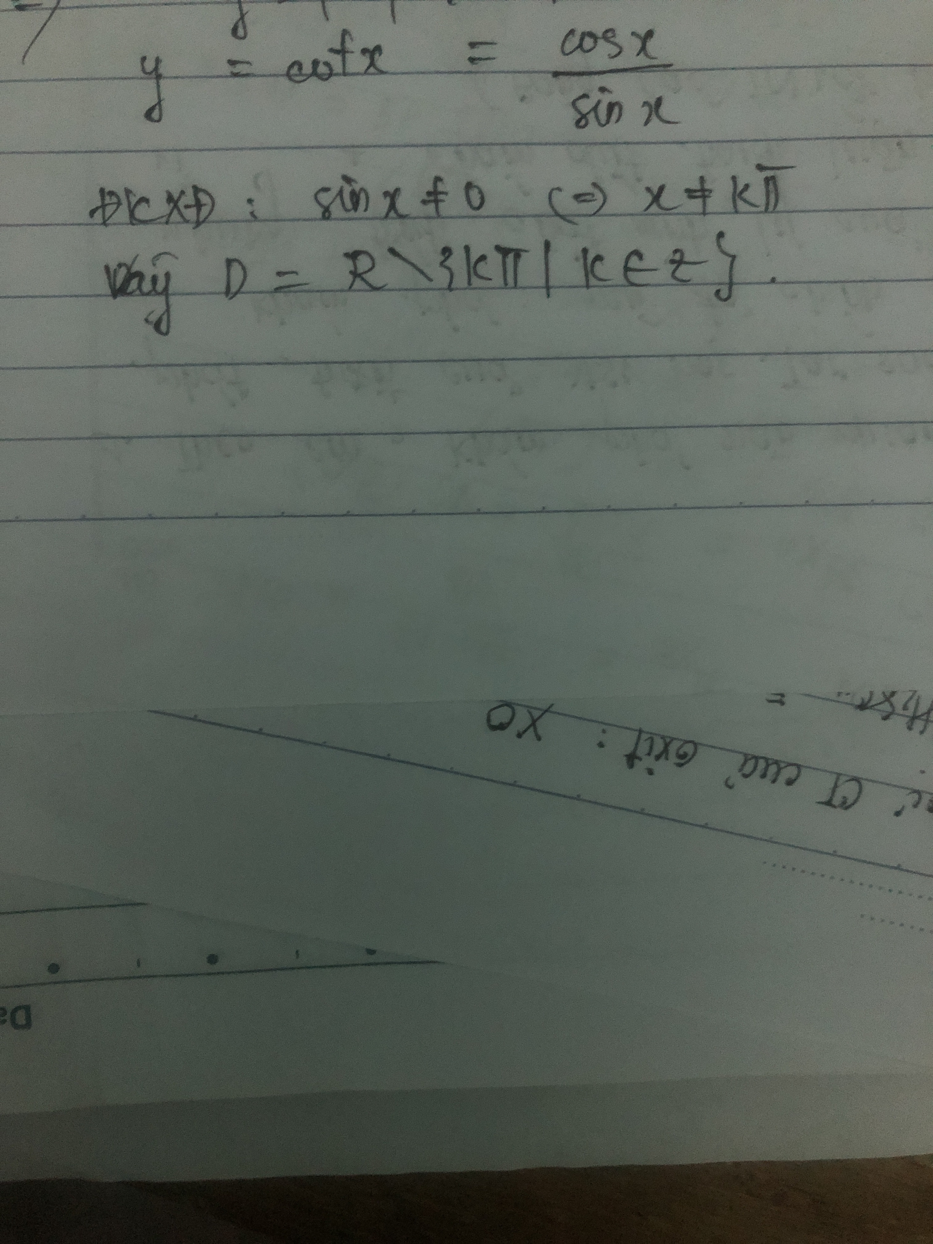 tìm tập xác định của hàm số y= cot x