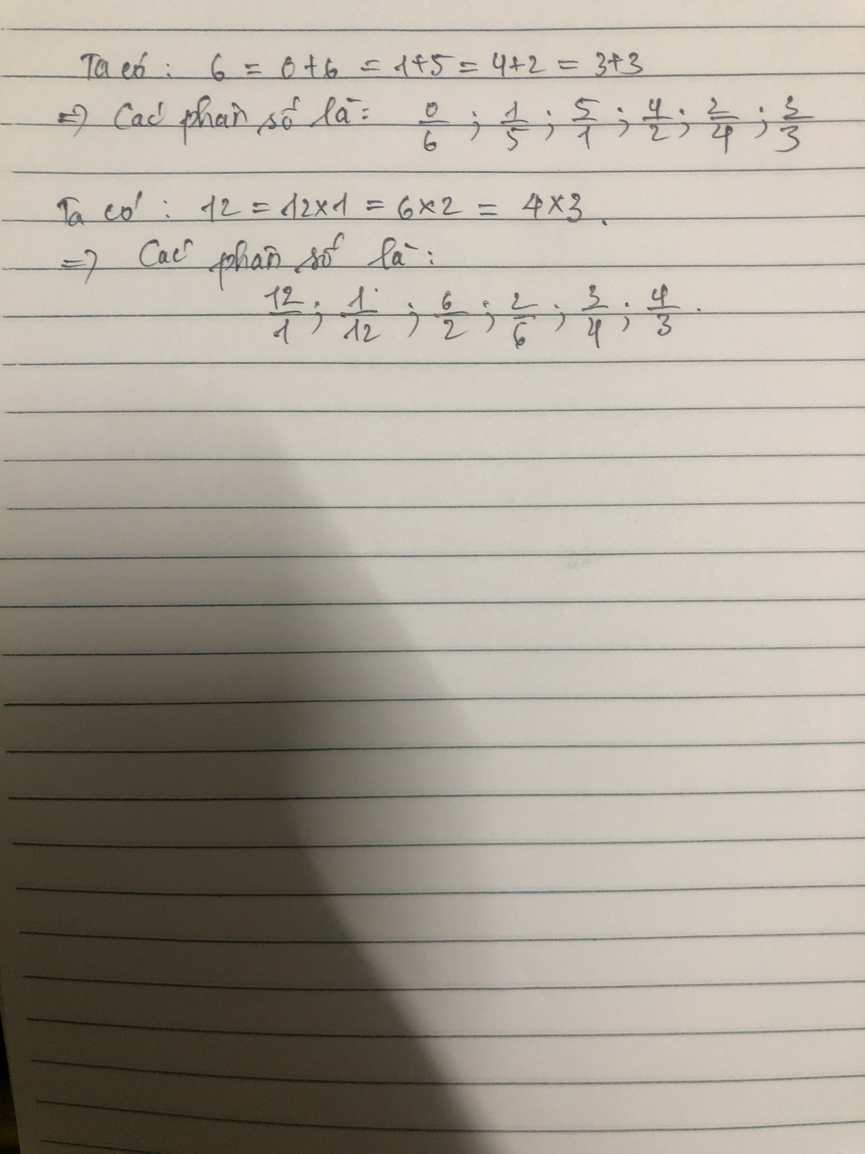 b.Các phân số có tích của tử số và mẫu số bằng 12 là: