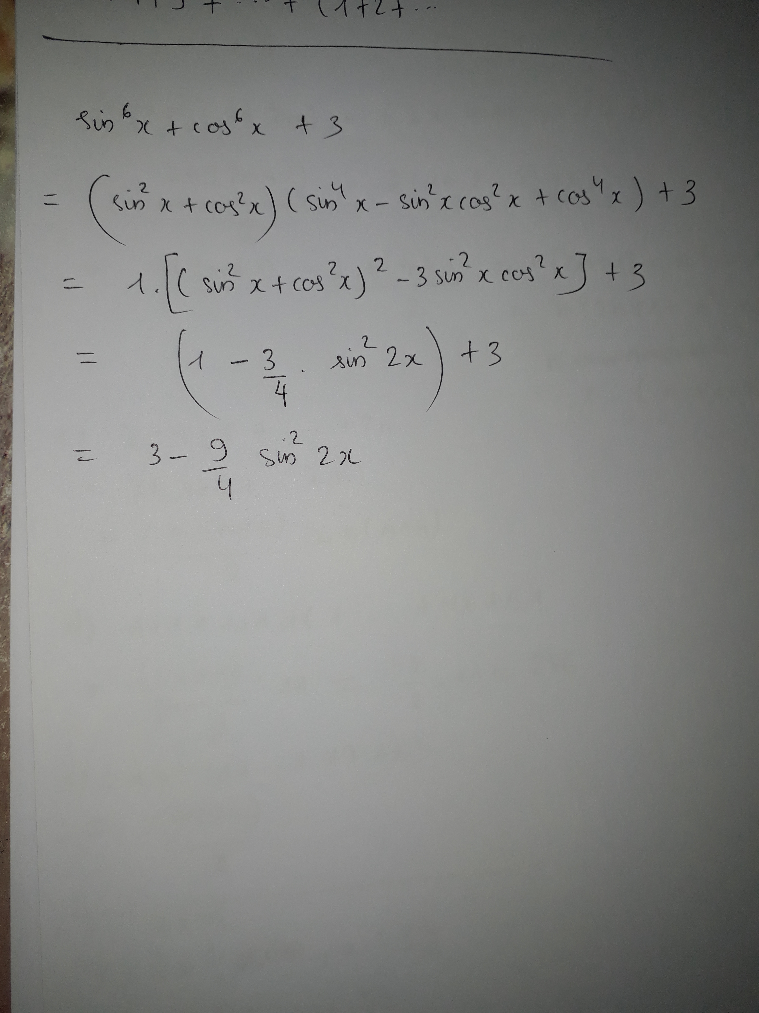 Rút gọn biểu thức: sin^6x + cos^6x +3 bằng