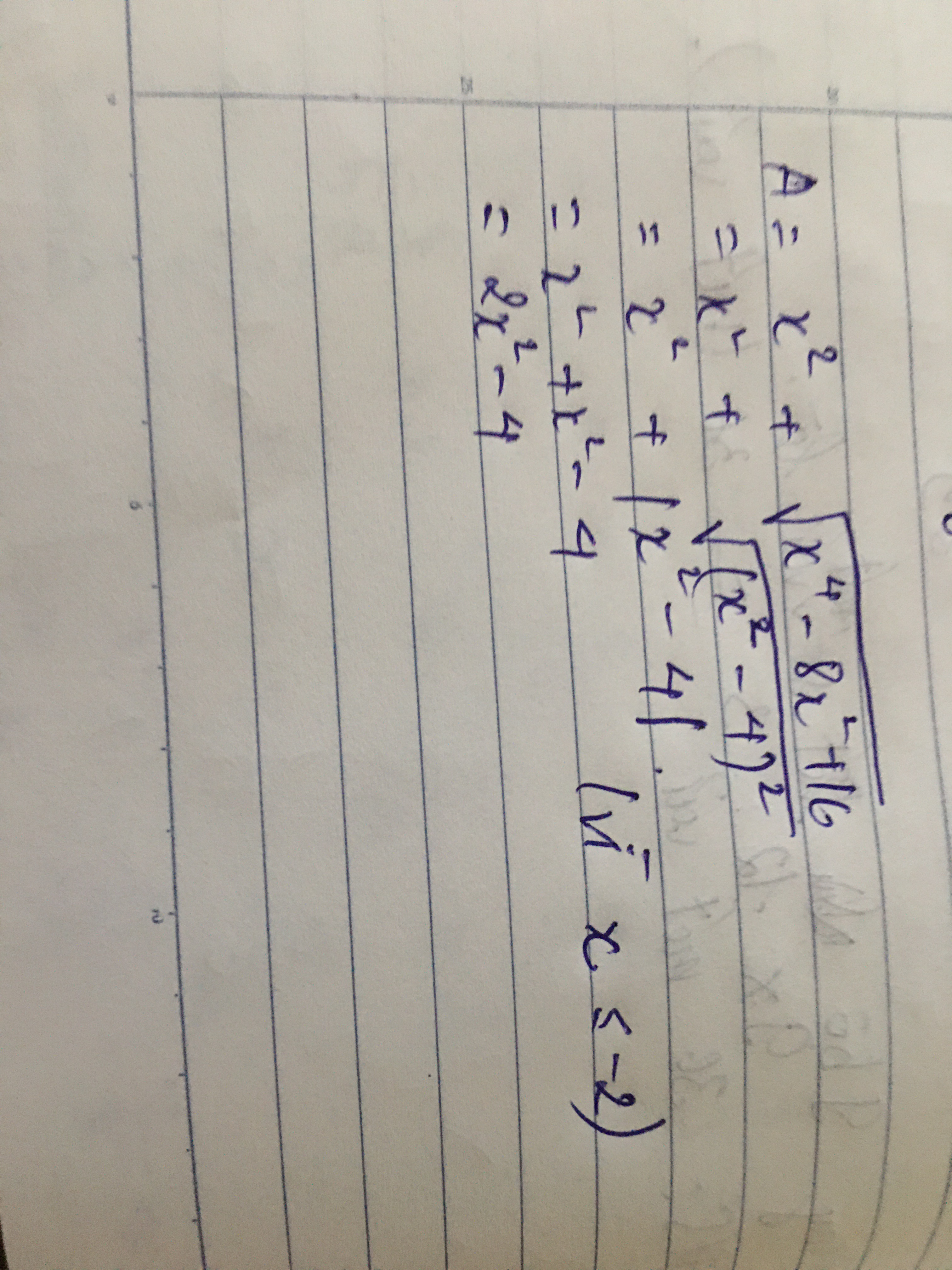 b_4 A = x ^ 2 + sqrt(x ^ 4 - 8x ^ 2 + 16) với x <= - 2 b.