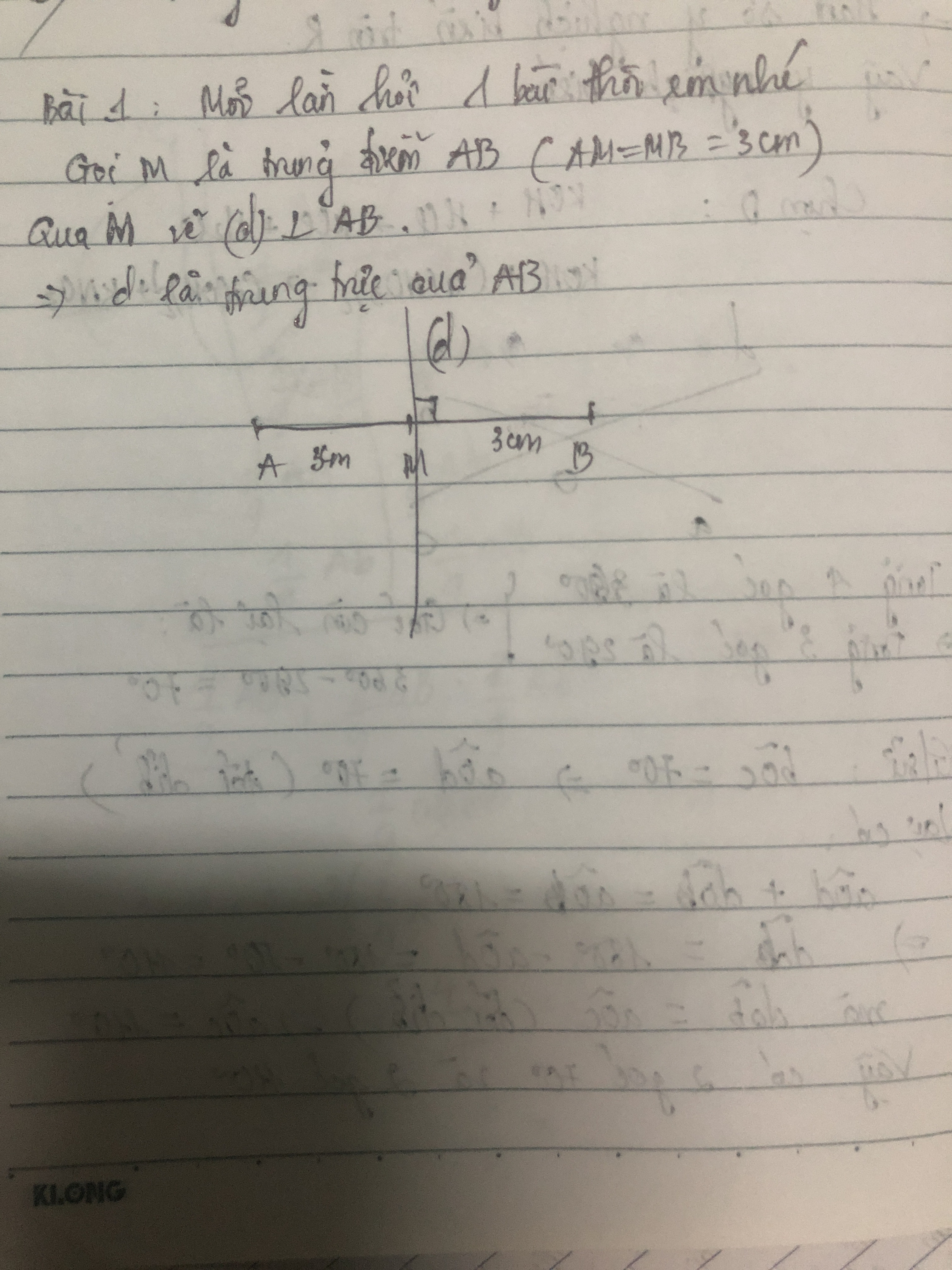 Bài 1: Vẽ đường trung trực của đoạn thẳng AB= 6cm
