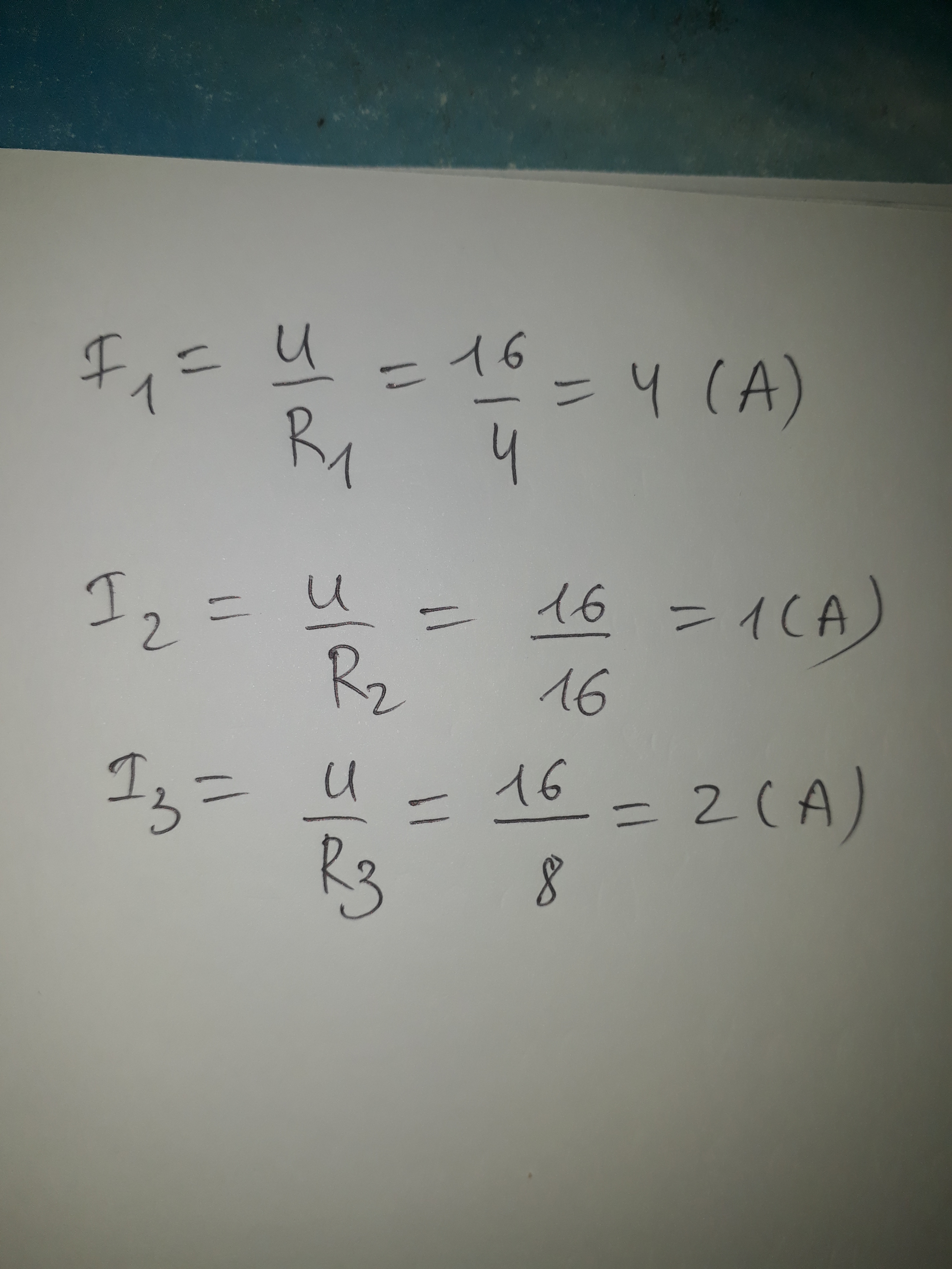 Ba điện trở R1=4ôm,R2=16ôm,R3=8ôm . Mắc song song với nhau vào 16V .I qua các điện trở có giá trị