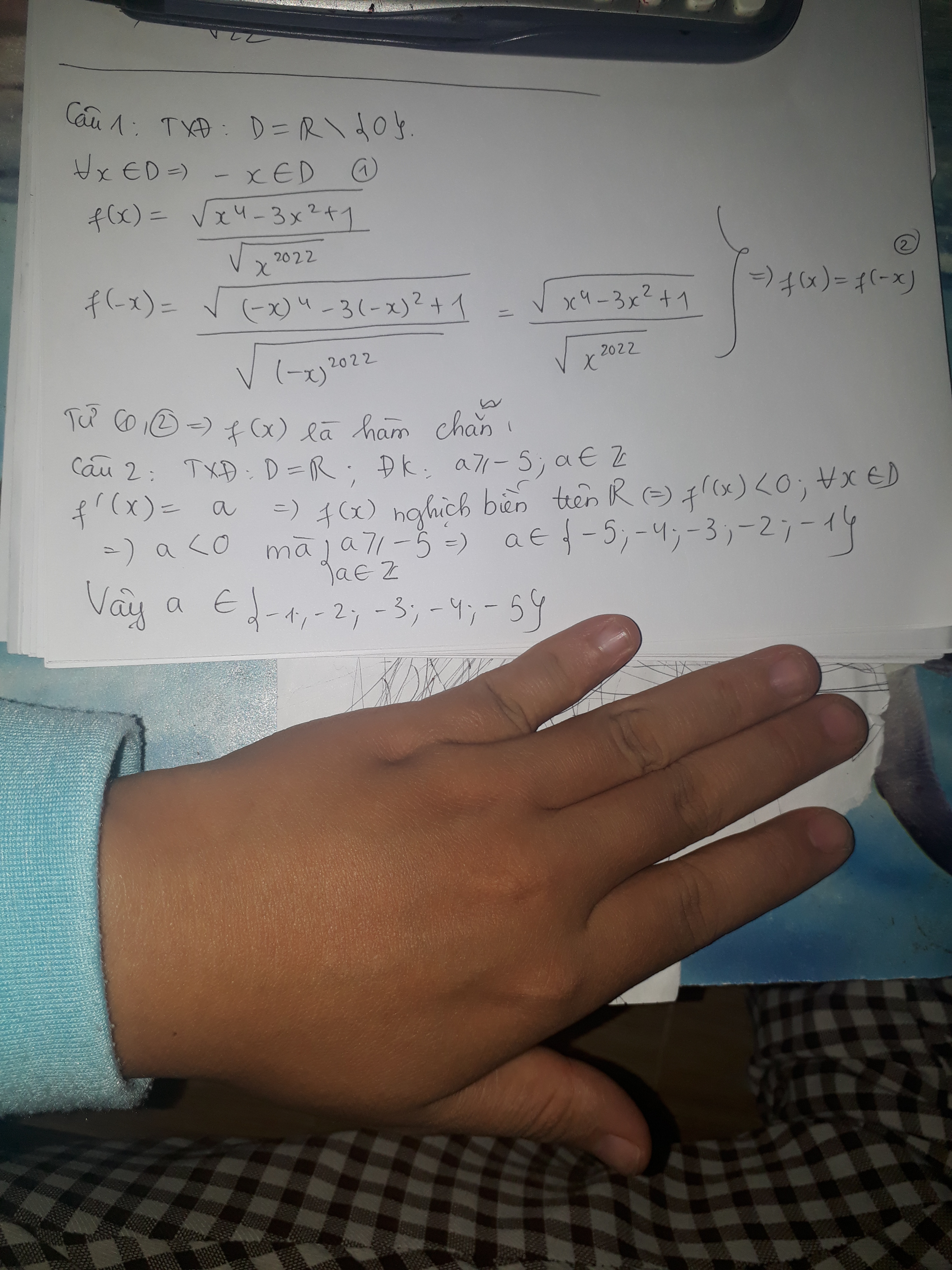 Câu 1: Tìm tập xác định và xét tính chẵn, lẻ của hàm số f(x) = .