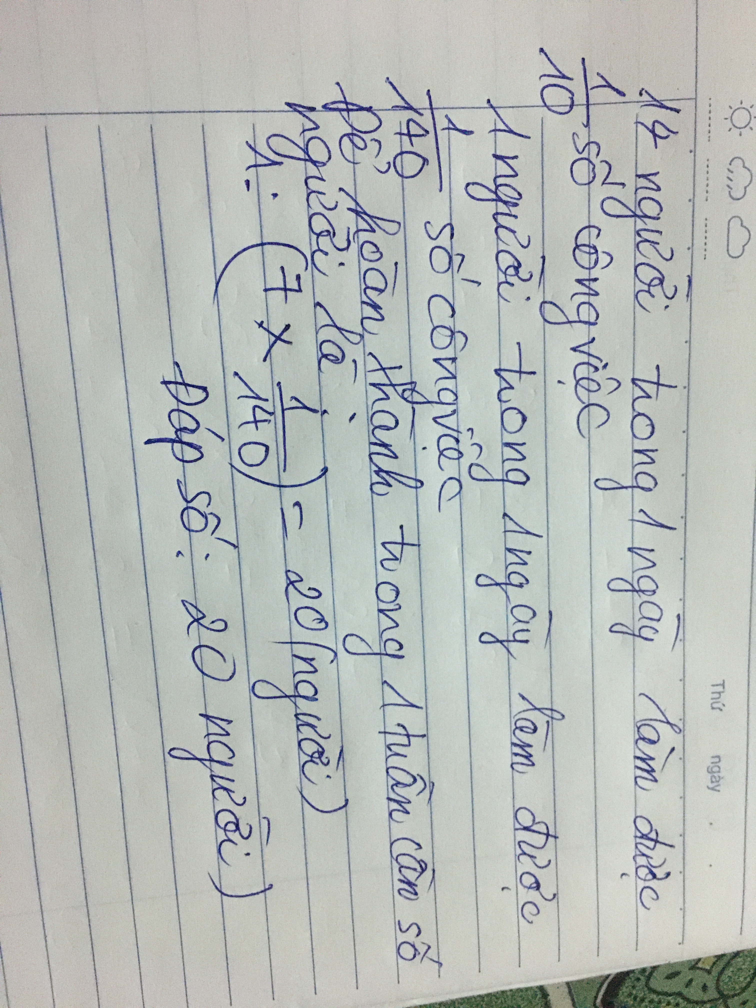 Bài 3. Biết rằng, 14 người xây xong tường rào quanh trường phải mất 10 ngày. Nay nhà trường muốn xây xong tường rào đó trong một tuần lễ thì cần bao nhiêu người làm? ( mức làm của mỗi người như nhau)
