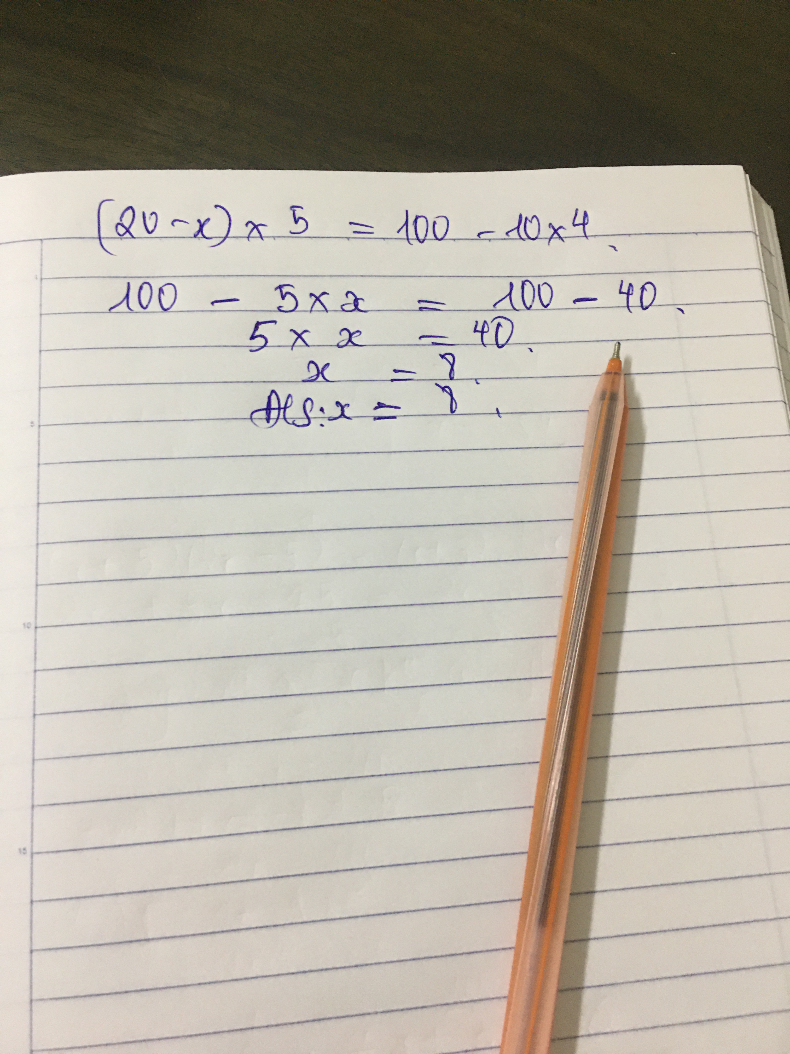 \left( {20 - x} \right) \times 5 = 100 - 10 \times 4\\