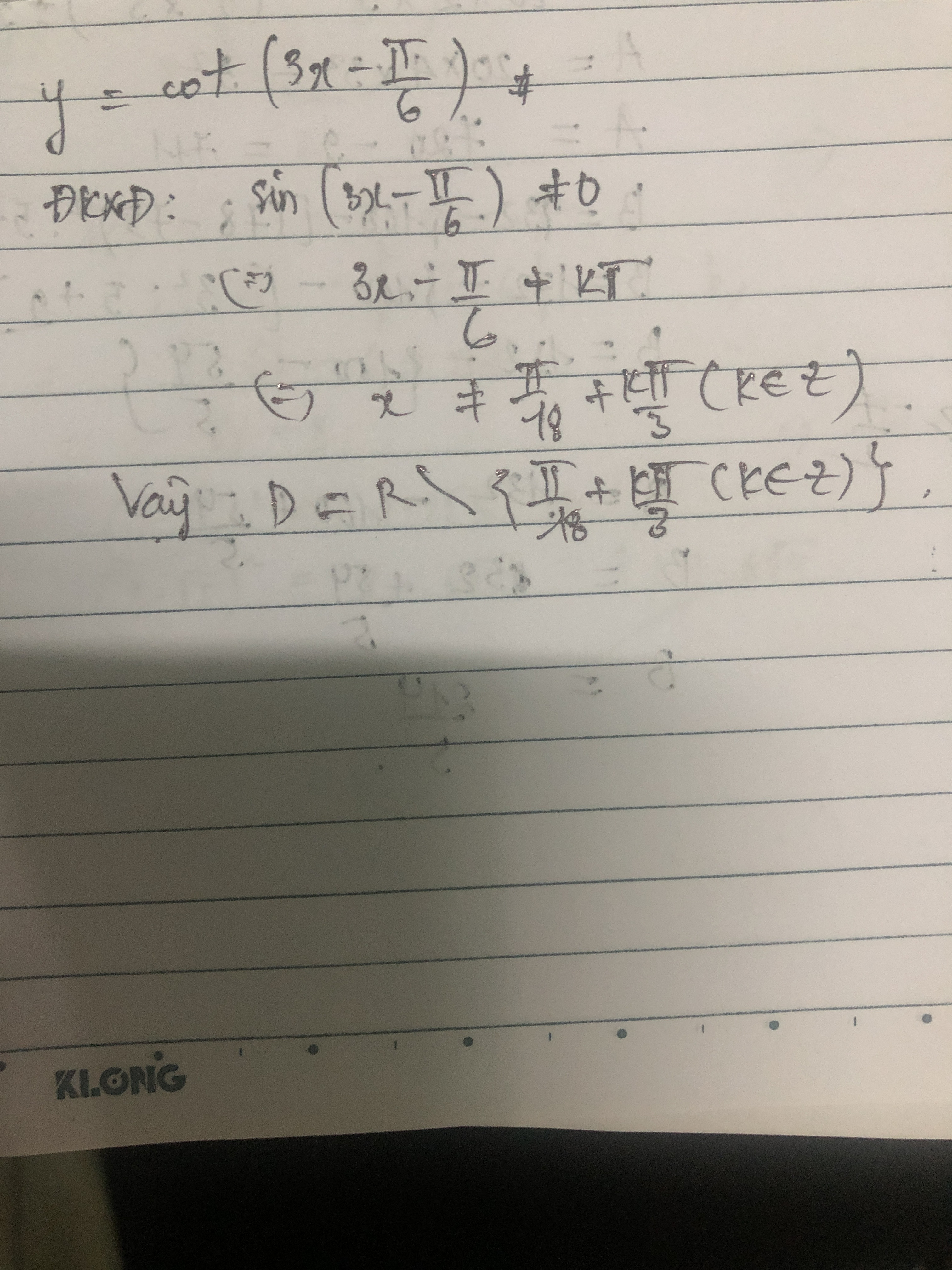 Tìm tập xác định của hàm số y=cot(3x-bi phần 6