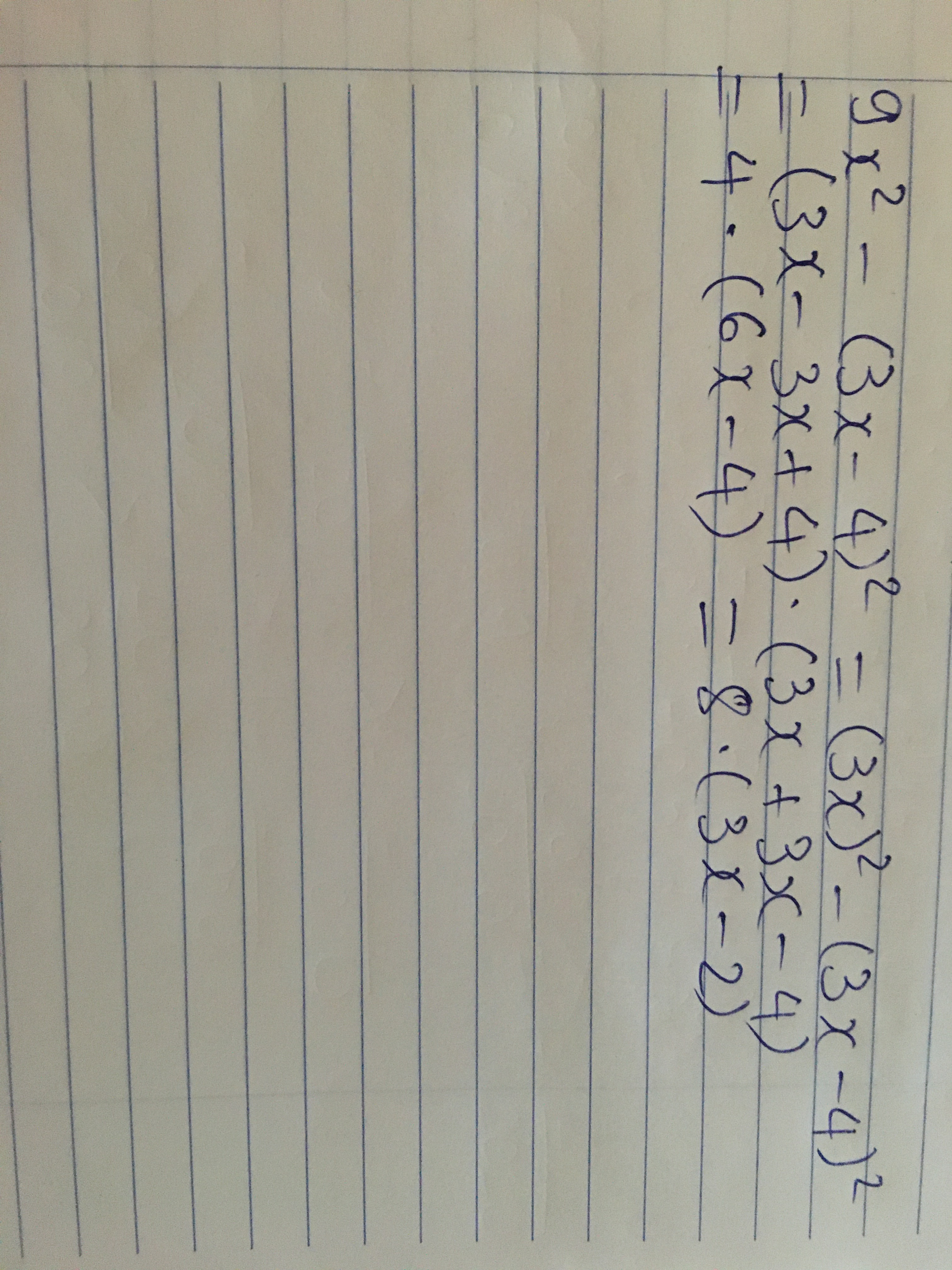 Rút gọn biểu thức bằng cách dùng hđt 9x^2-(3x-4)^2
