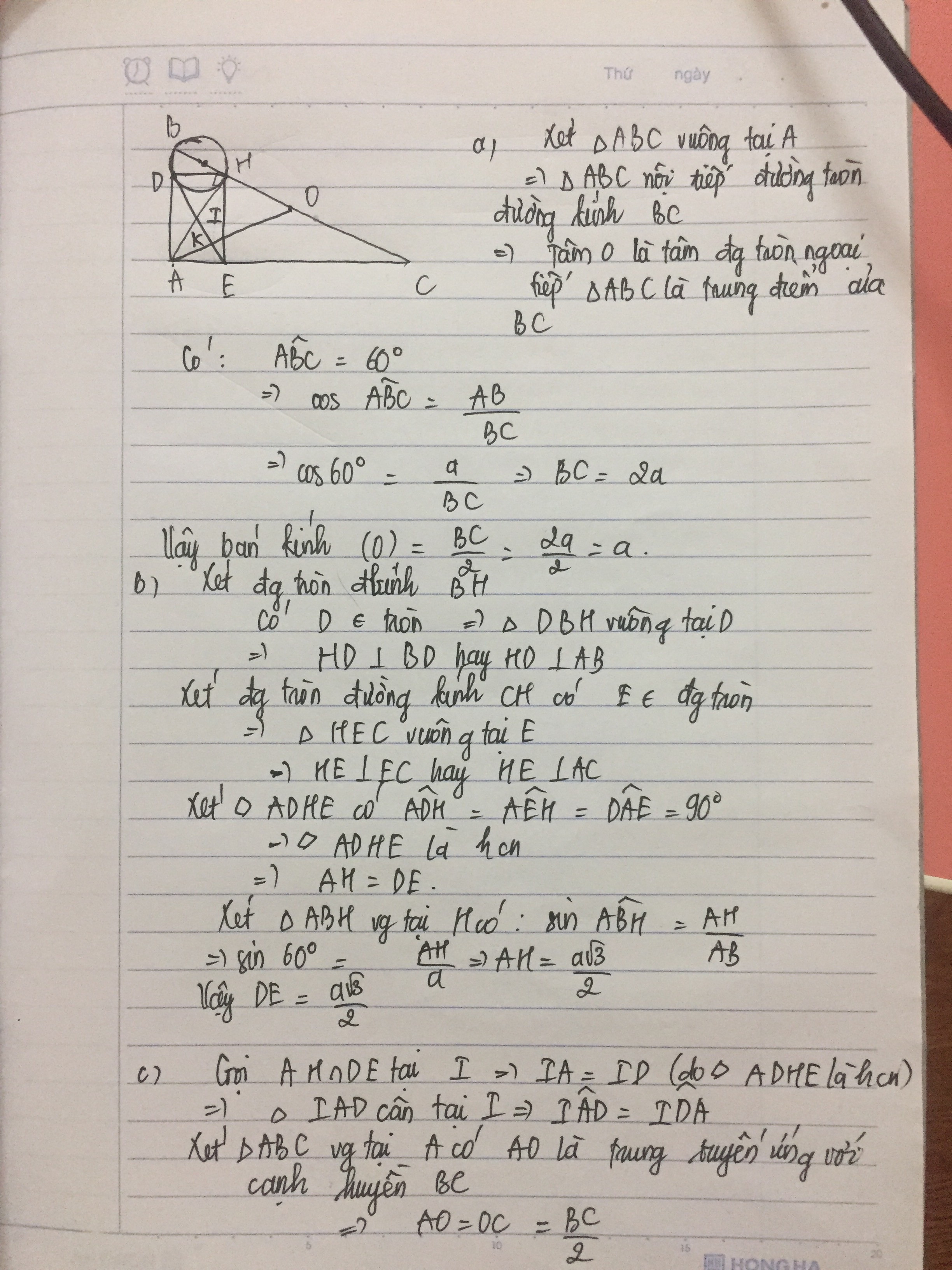 kính CH cắt AC tại E. Tứ giác ADHE là hình gì? Tính DE.