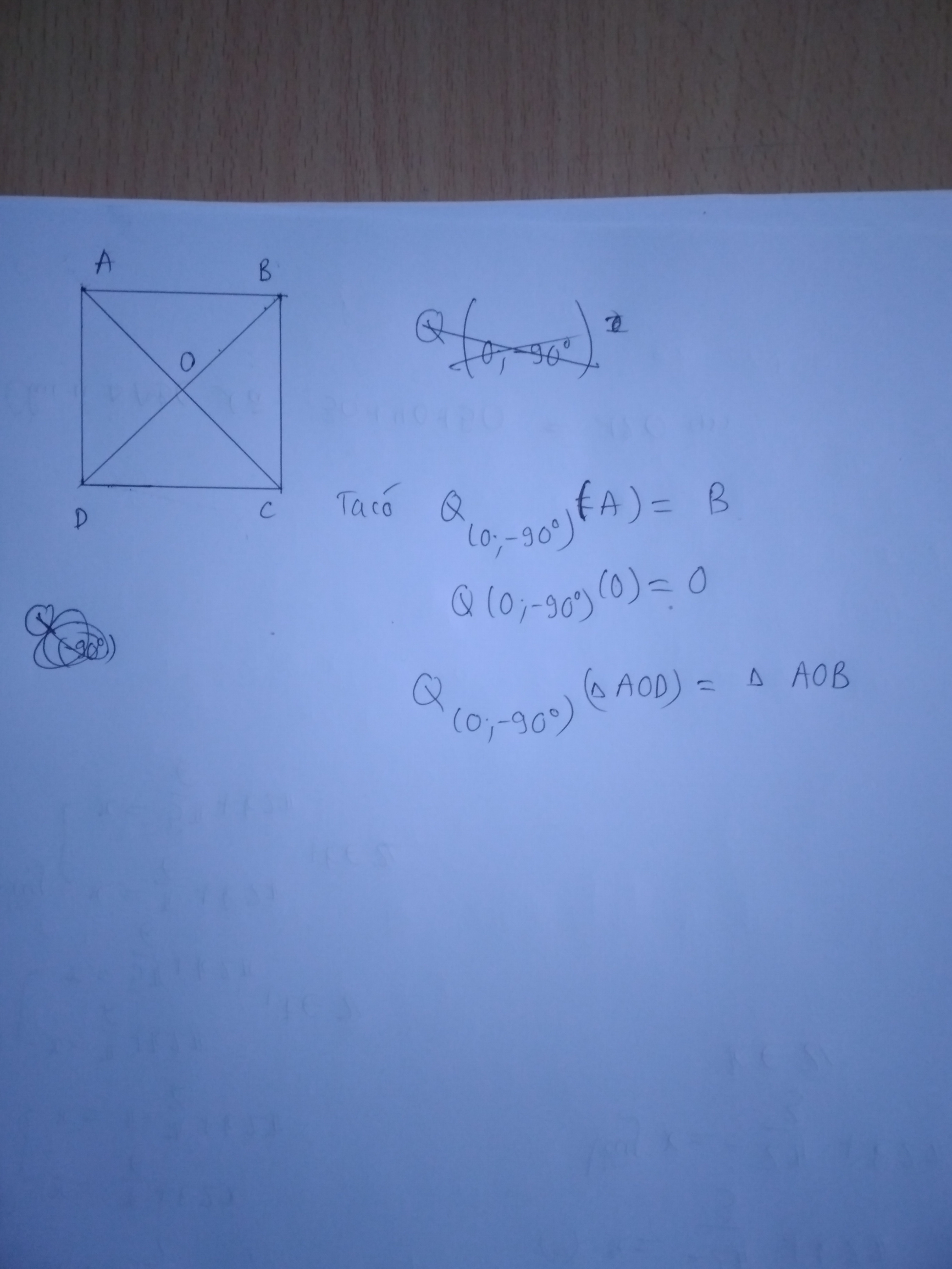 Cho hình vuông ABCD tìm ảnh của O,A và tam giác A0D qua phép quay tâm 0 từ 0 cho đến (-90°)