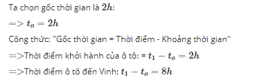 Một ô tô khởi hành từ hà nội lúc 4h và đến vinh lúc 10h. Nếu chọn gốc thời gian lúc 2h thì thời điểm khởi hành của ô tô t1 và thời điểm ô tô đến Vinh t2 là