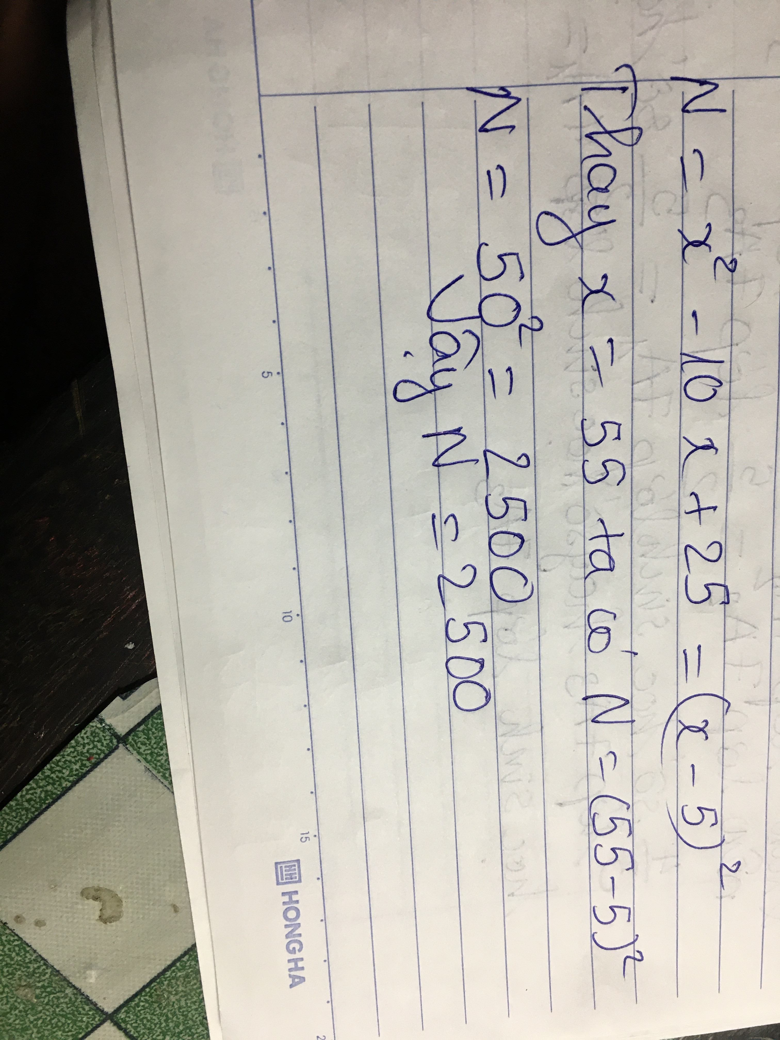 N=x^2-10x+25 tại x=55