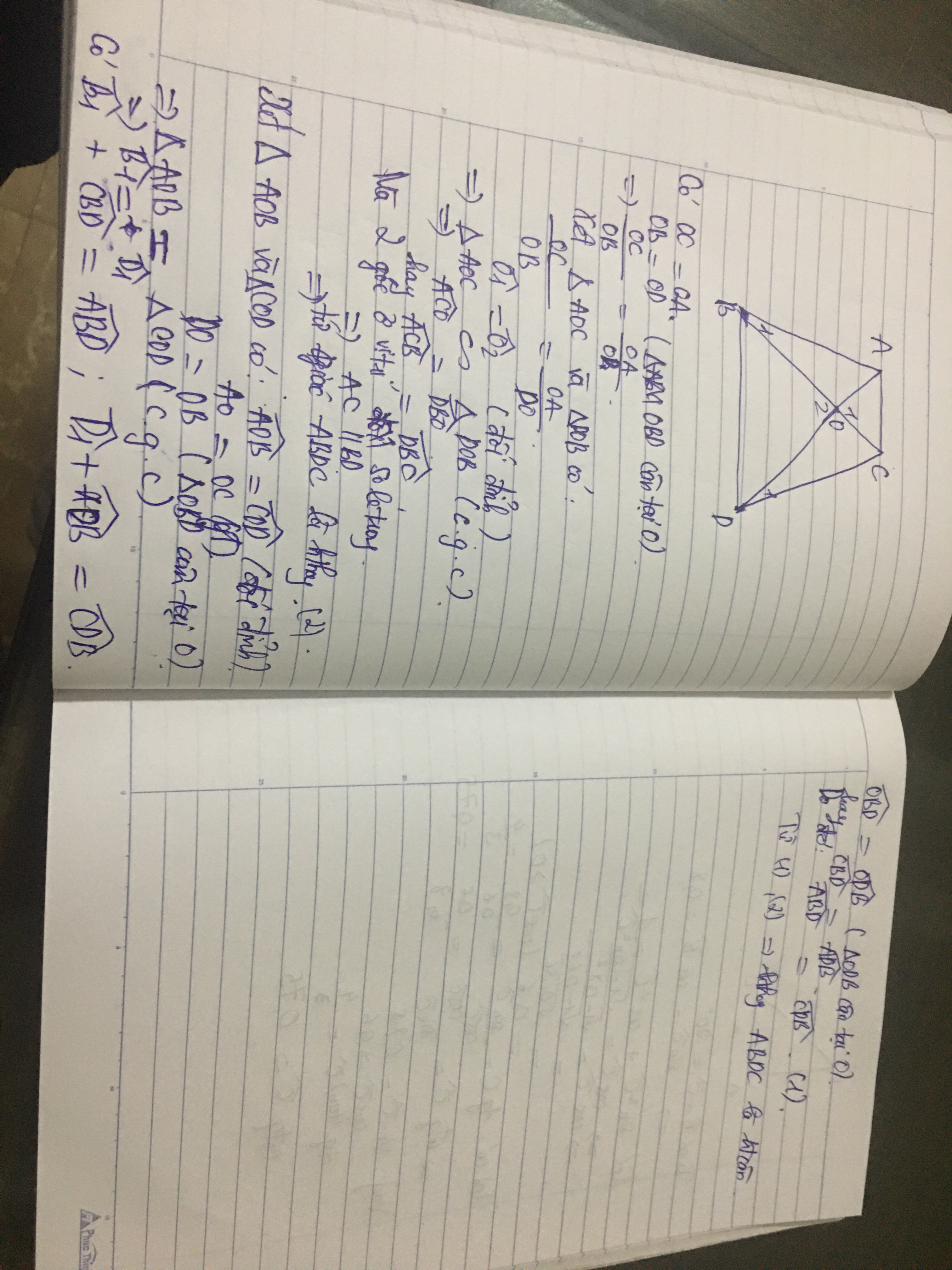 cho tam giác OBD cân tại O, trên tia đối OD lấy A, trên tia đối OB lấy C sao cho OC=OA. chứng minh góc ACB= CBD suy ra ABCD là hình thang