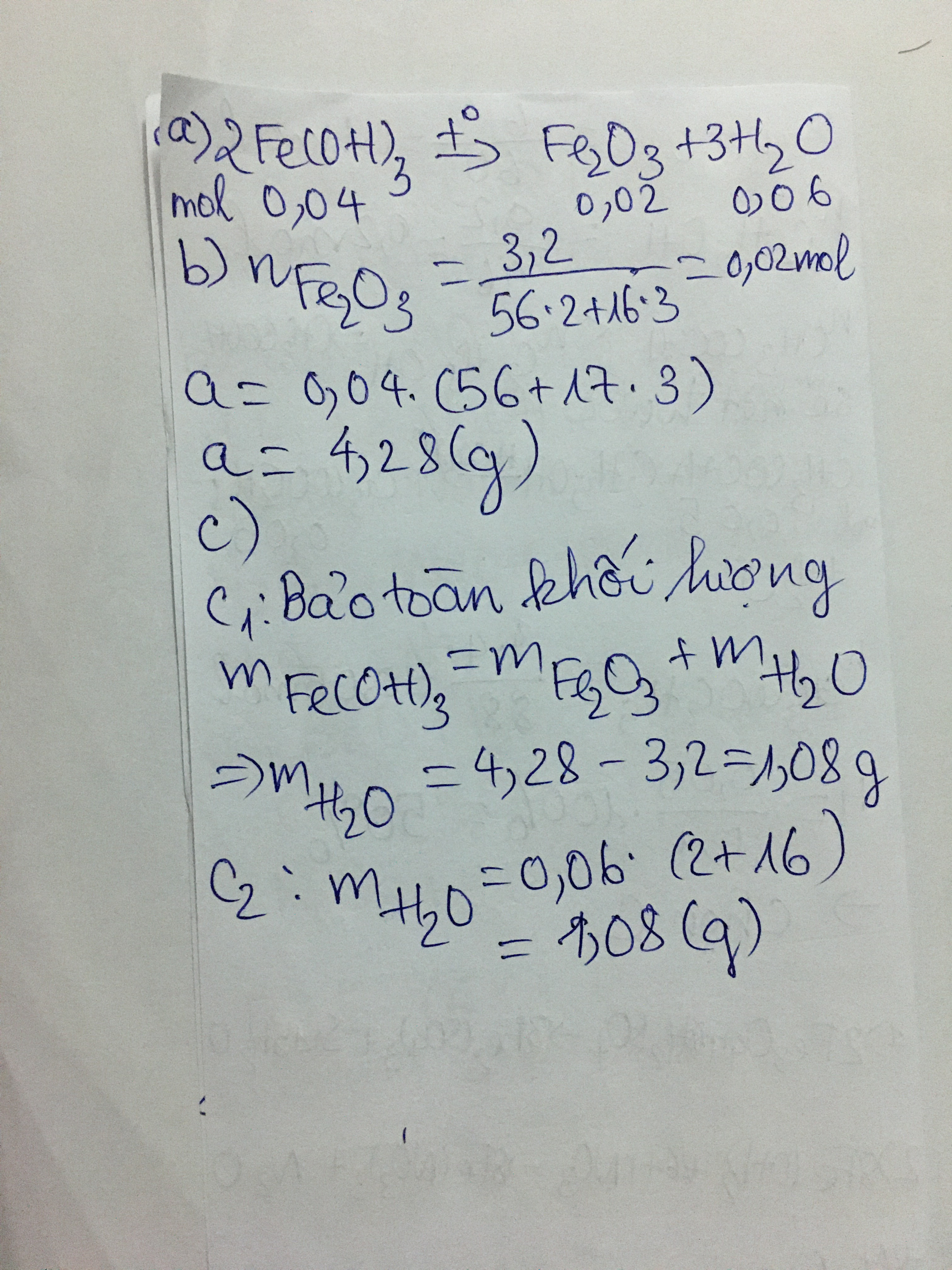 Nhiệt phân hoàn toàn a(g) Fe(OH)3 thu được 3,2g Fe2O3 và hơi nước