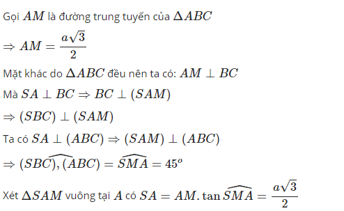 Góc giữa SA và mp(SBC) là góc <SAM> đáp án trên sai rùi
