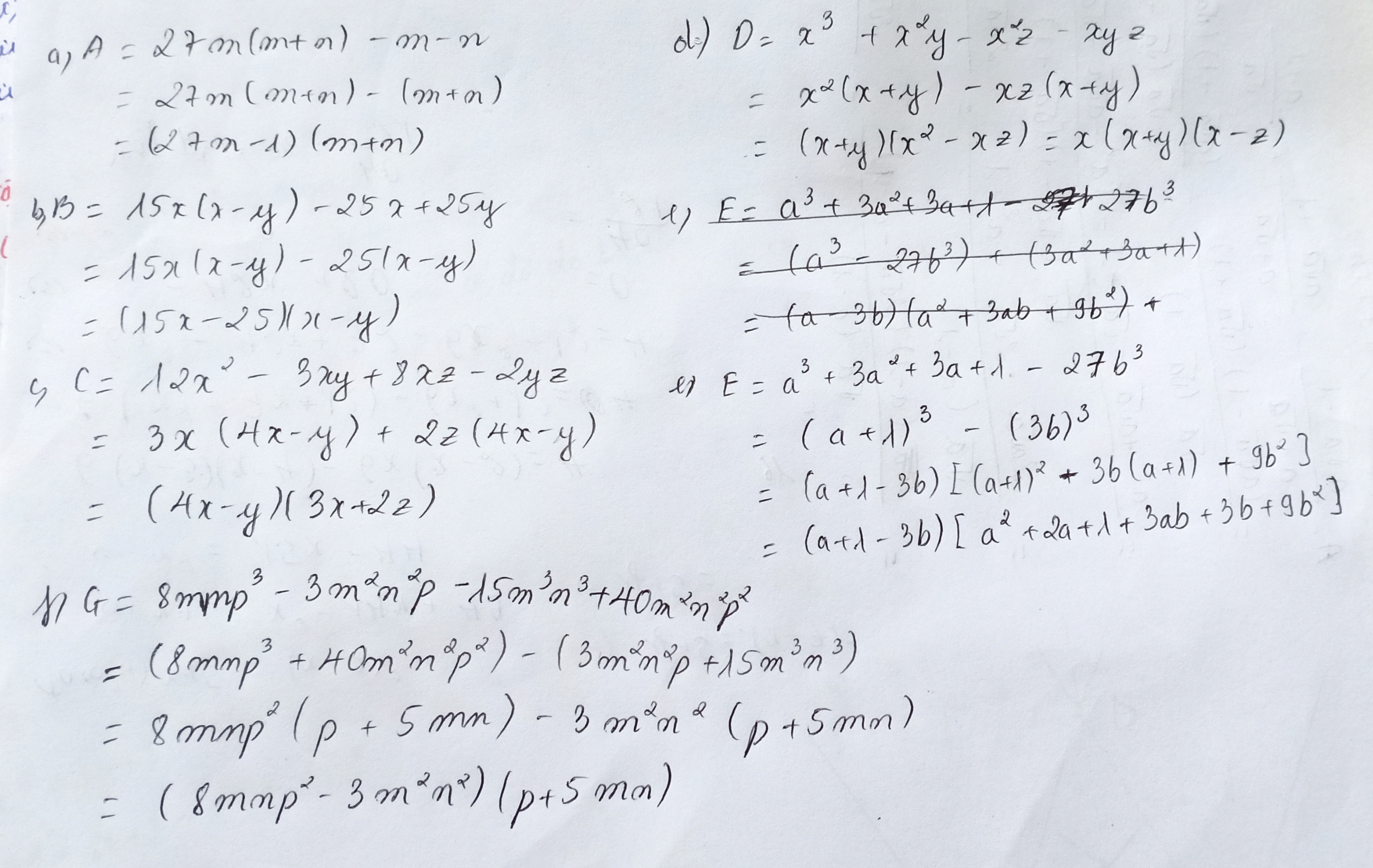 g) G=8mnp^3 -3m^2n^2p-15m^3n^3+40m^2n^2p^2
