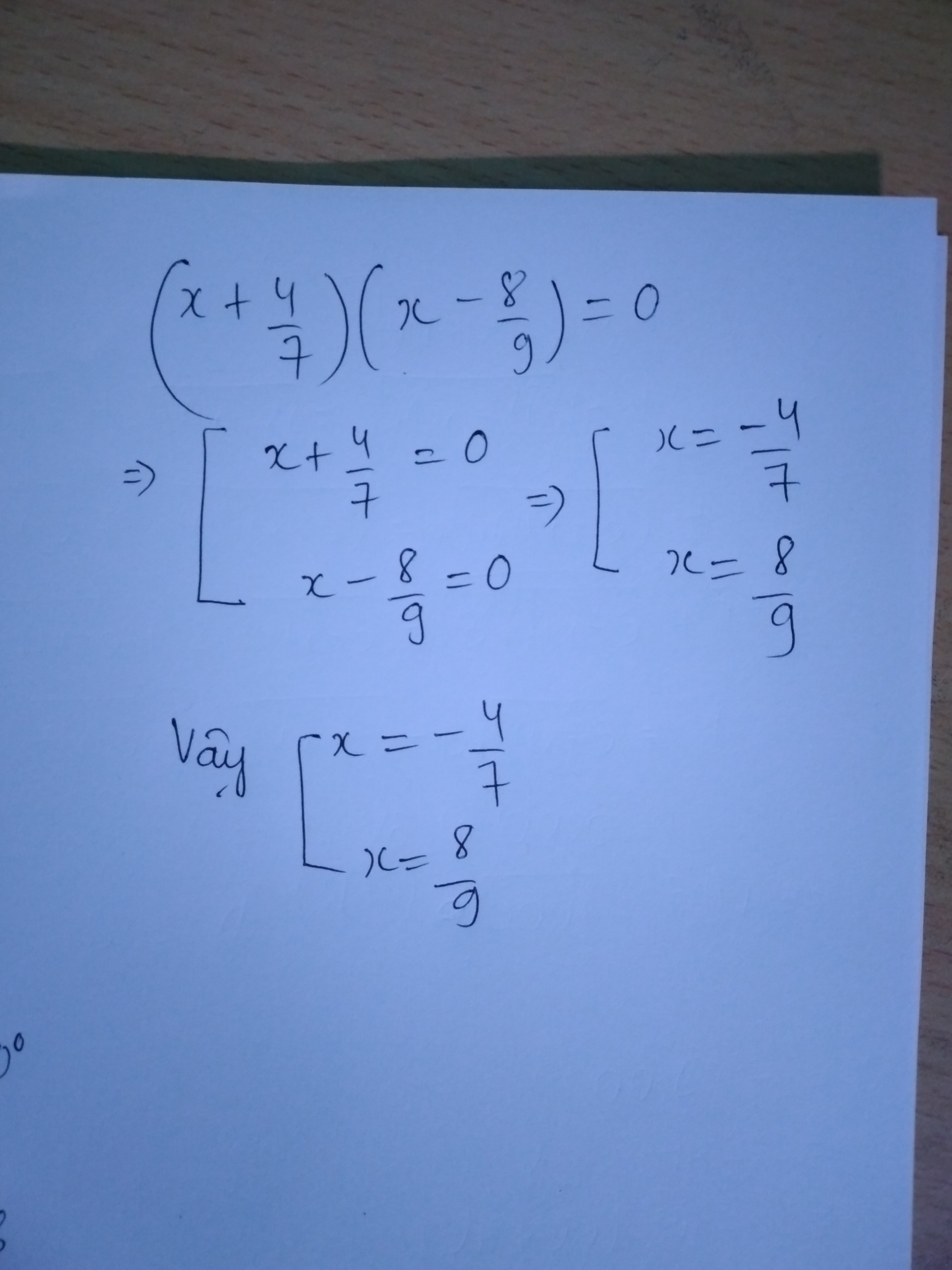 (X+4/7)(x-8/9)=0