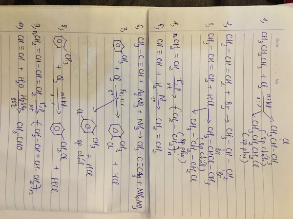 1. Propan + Cl2 (askt, tỉ lệ mol 1:1)