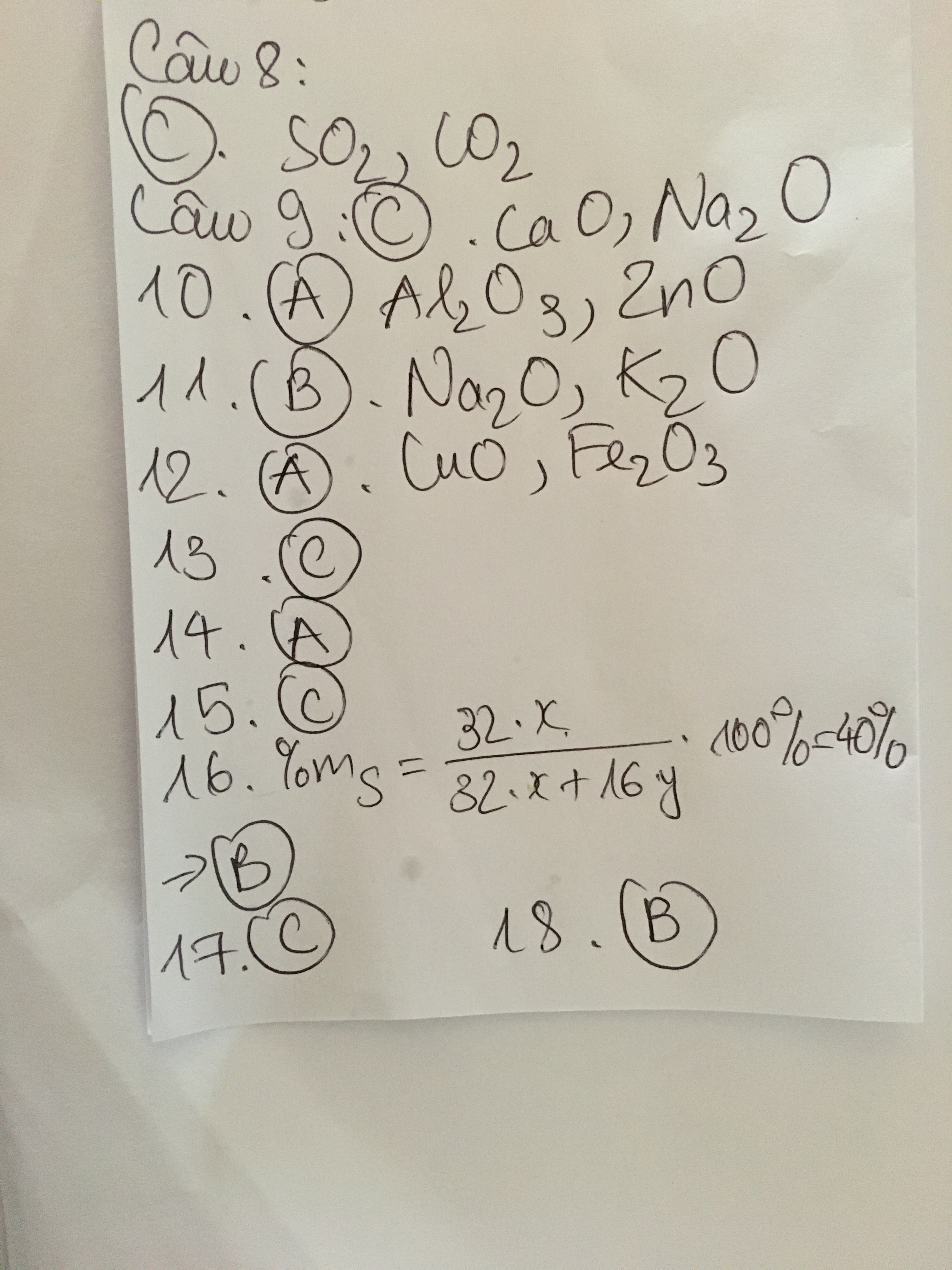 Câu 16: Công thức hoá học của oxit có thành phần % về khối lượng của S là 40 %: