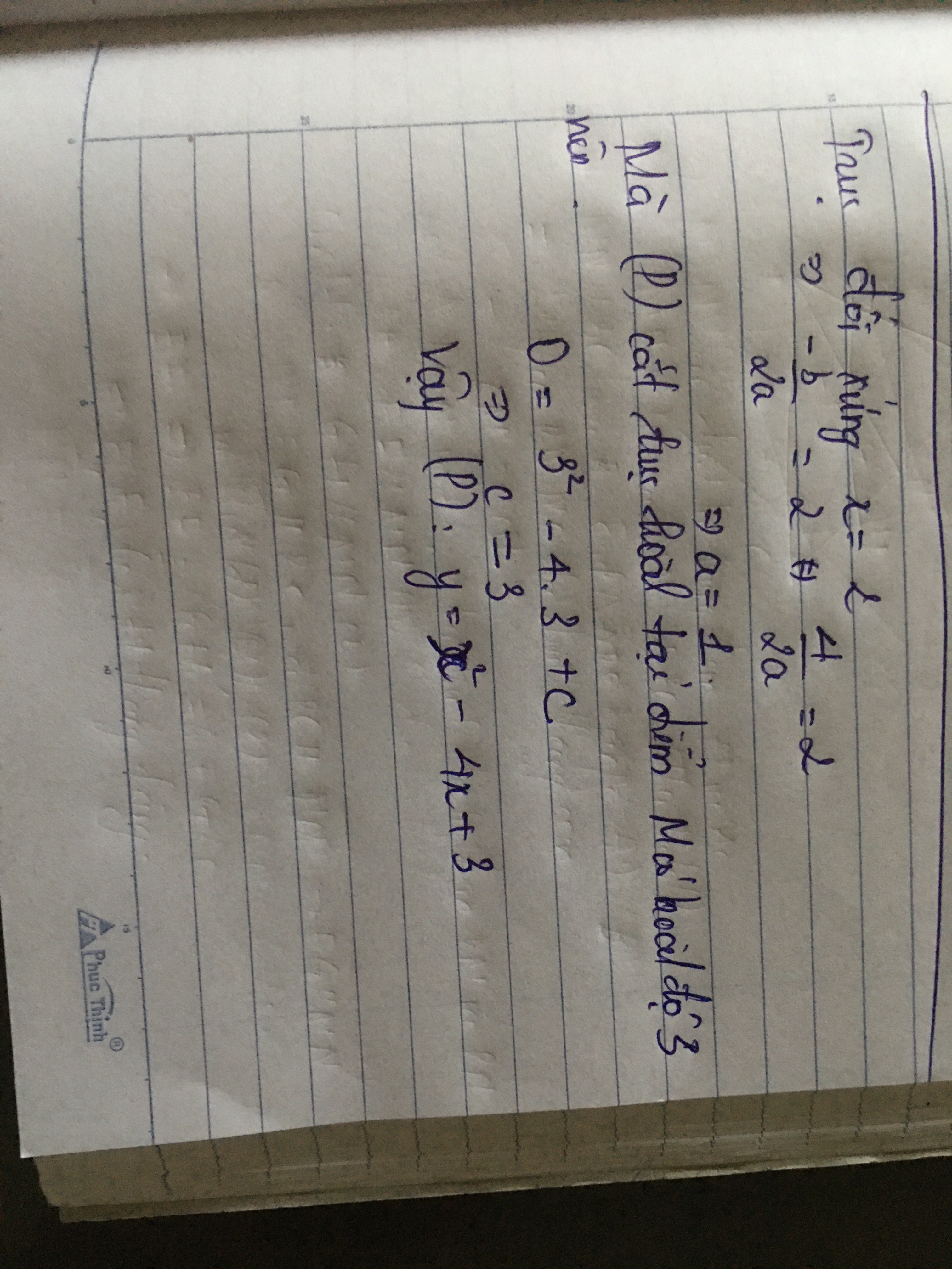 Xác định parabol biết P: y=ax^2-4x+c có trục đối xứng là đường thẳng X=2 và cắt trục hoành tại điểm M có hoành độ bằng 3