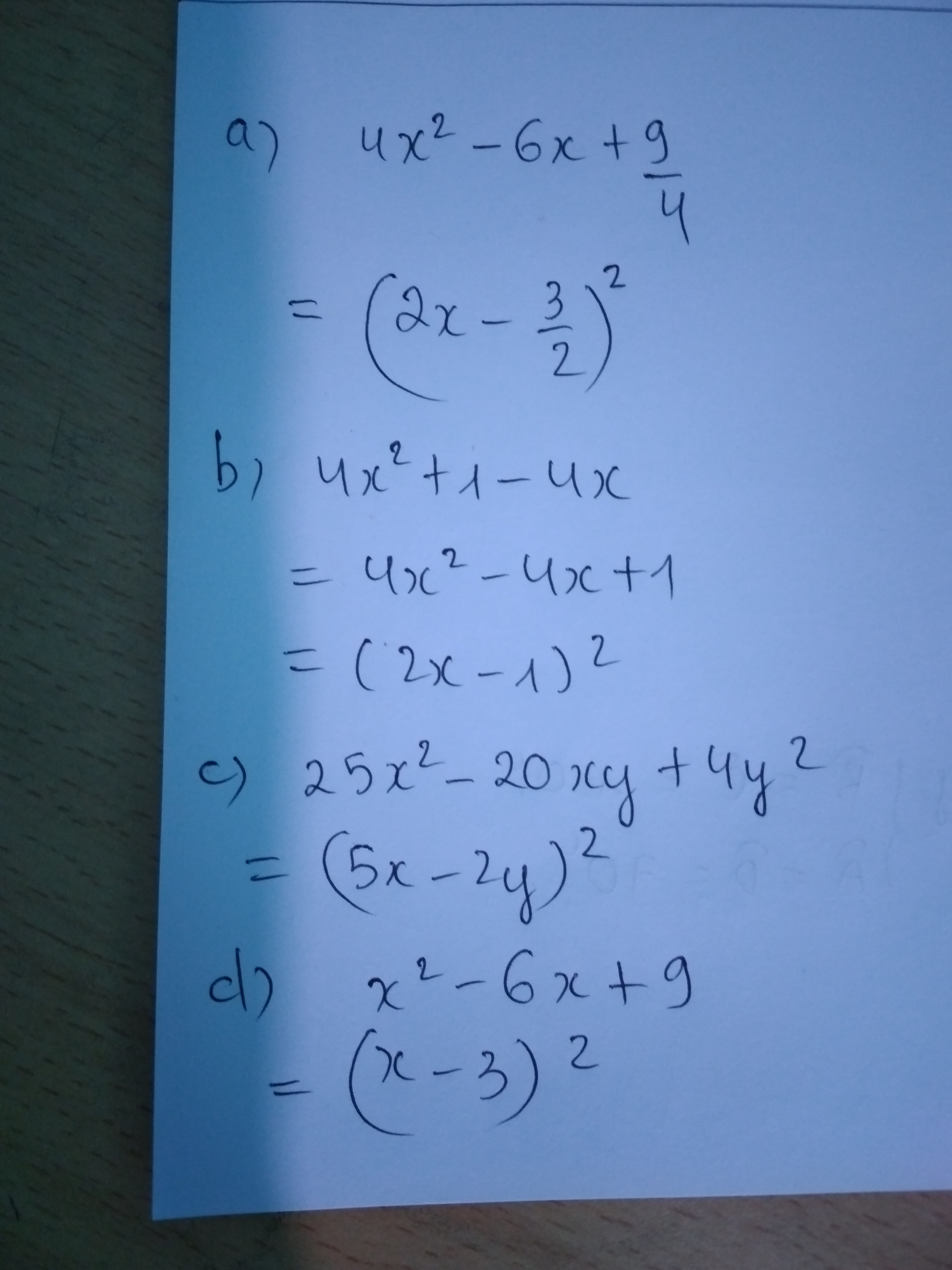 Viết các biểu thức sau dưới dạng bình phương một hiệu
