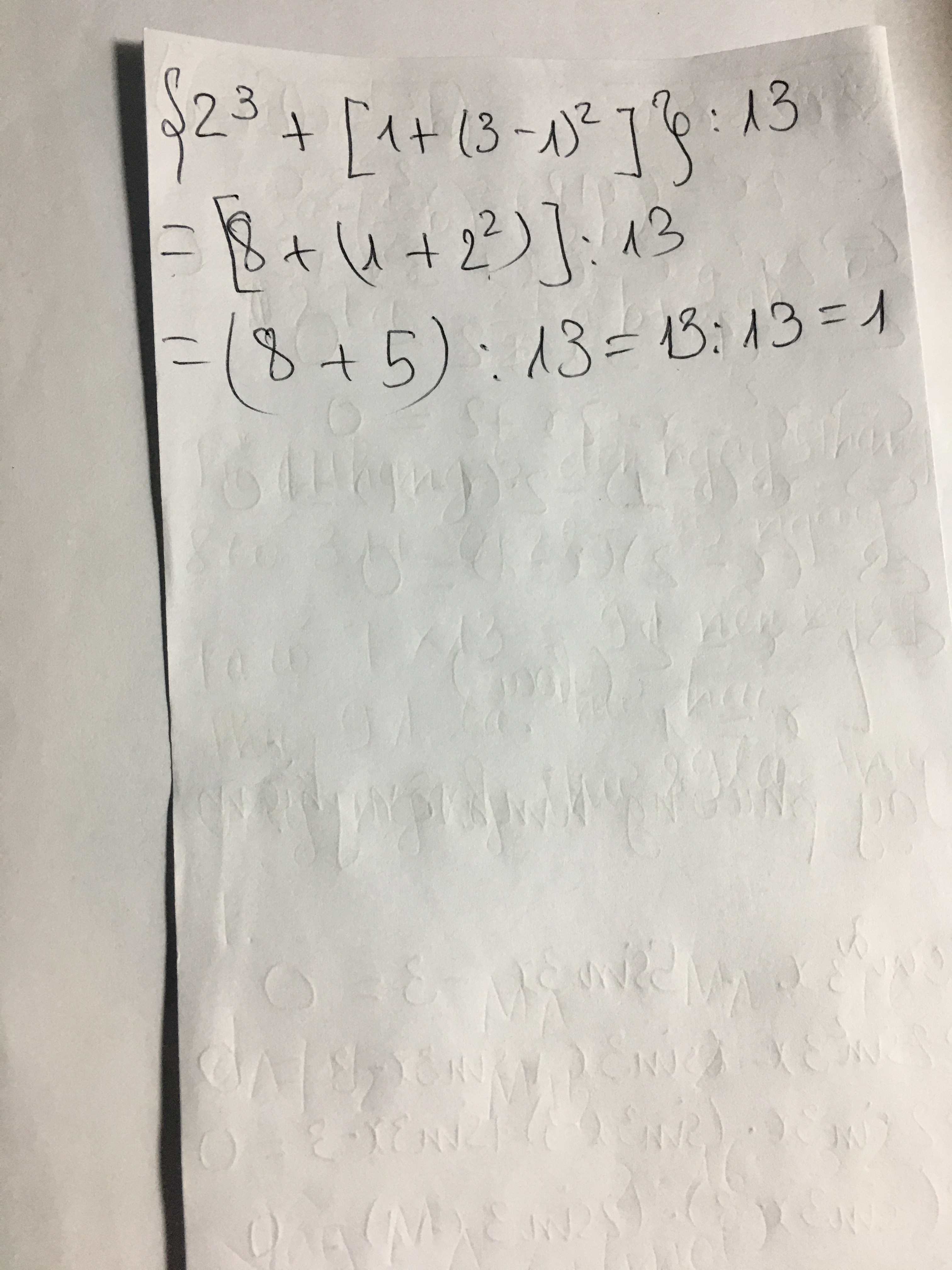 { 2^3 + [ 1 + ( 3-1) ^2 ] } : 13