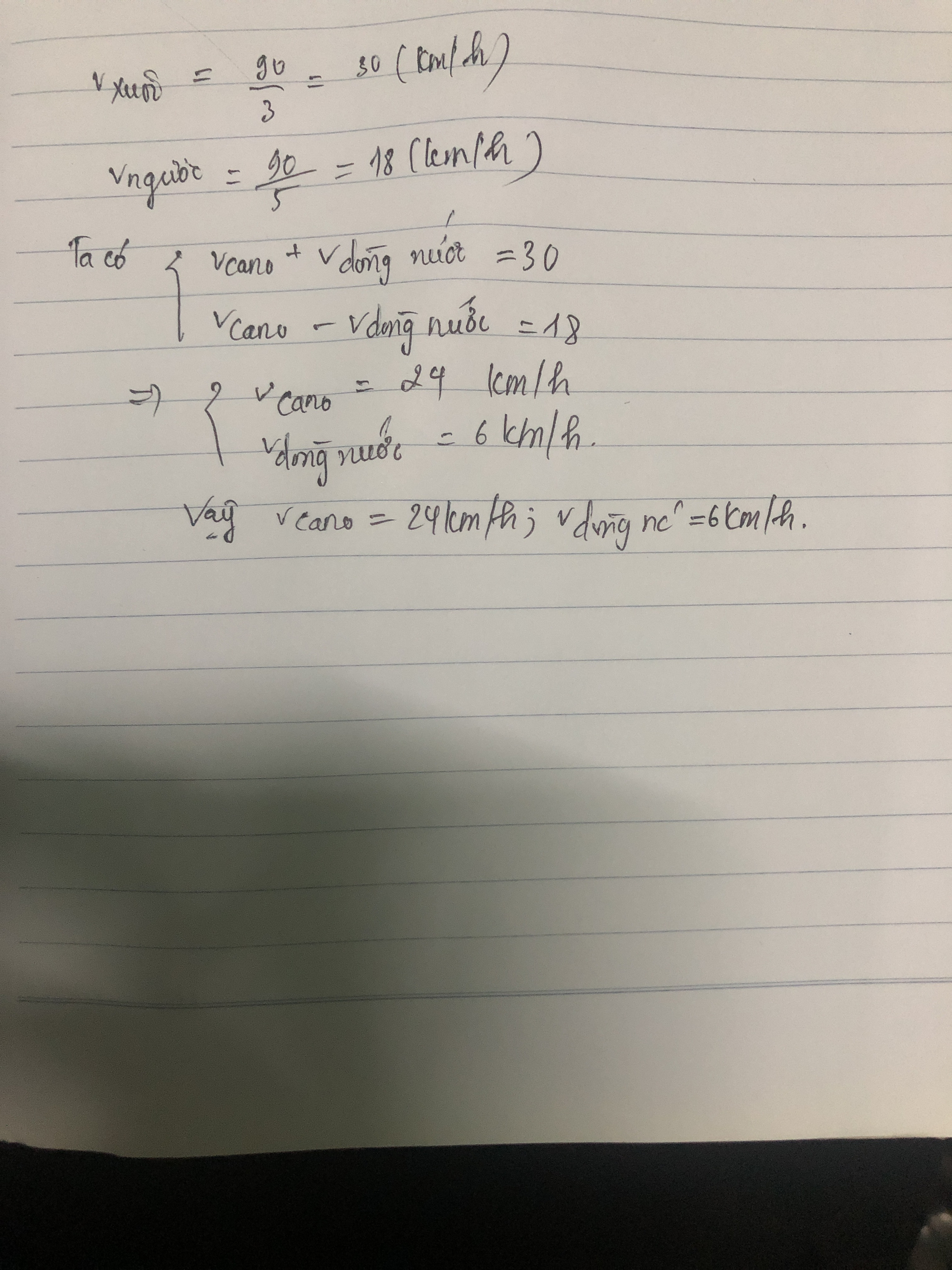 cano chạy xuôi dòng từ A đến B thì mất 3 giờ, còn khi chạy ngược dòng từ B về A thì phải mất 5 giờ. Tính: