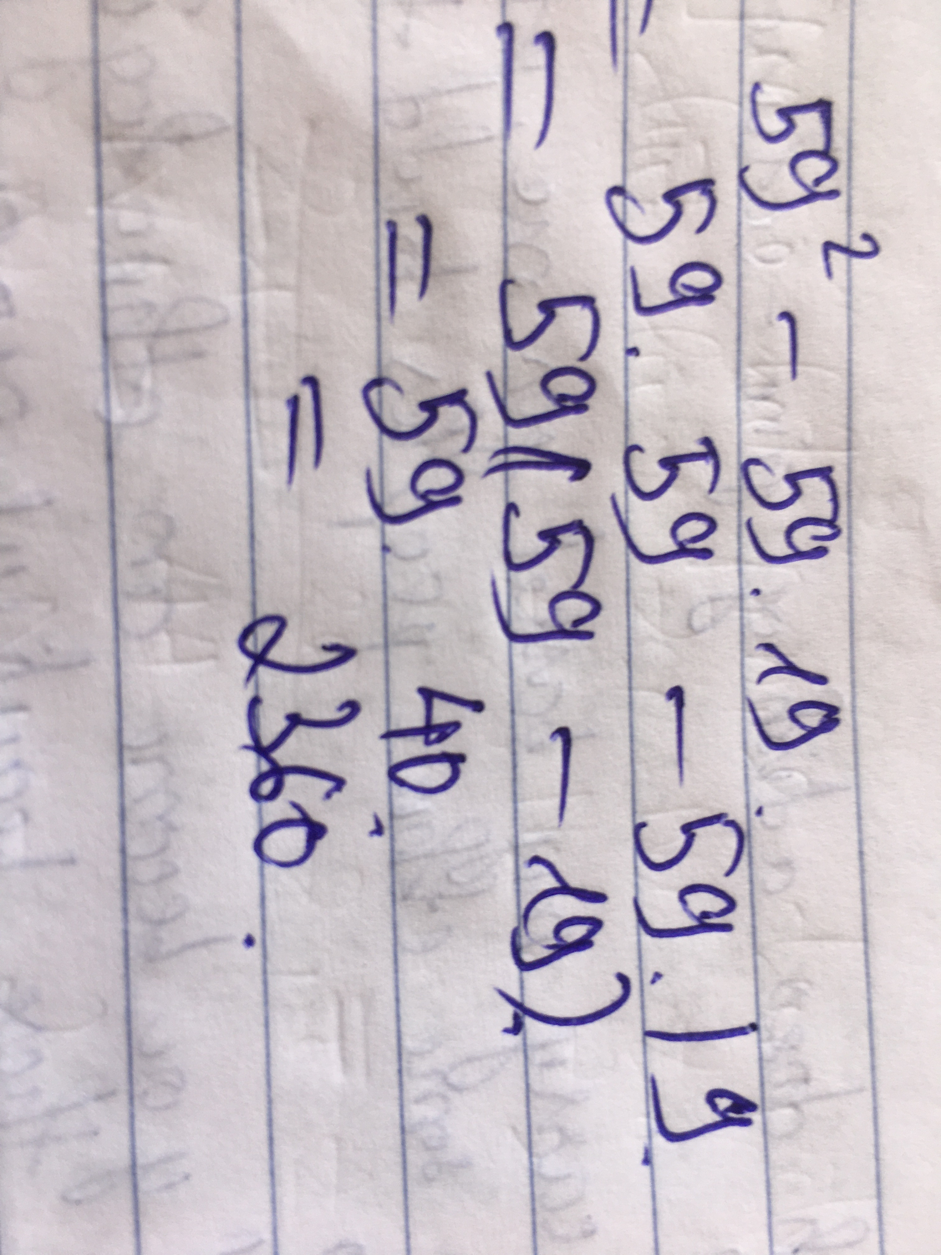 \[{59^2}--59.19 = 59.\left( {59 - 19} \right) = 59.40 = 2360\]