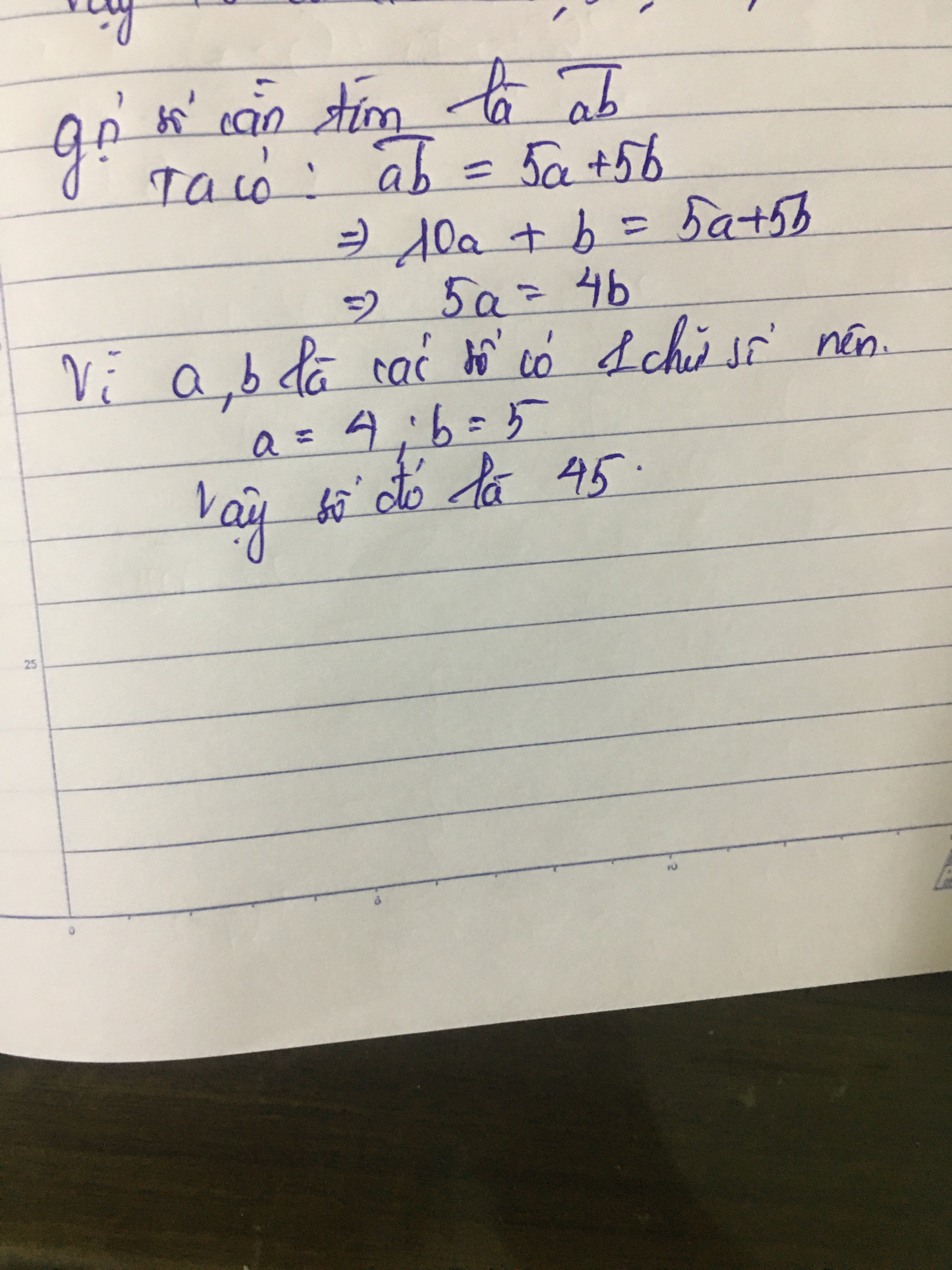 Tìm số có 2 chữ số biết số đó gấp 5 lần tổng các chữ số cuả nó?