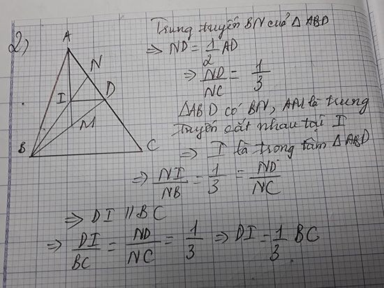 Cho tam giác ABC có D là trung điểm của AB lấy E và F thuộc BC, sao cho BE=FE=FC, trên tia đối của BA lấy K sao cho BD=BK, Gọi M là giao điểm của tia KE và CD, tia DE cắt KC tại N
