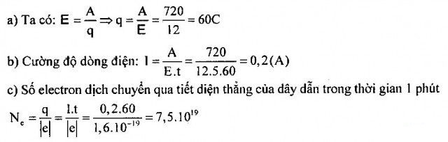 c. Tính số electron dịch chuyển qua tiết diện thẳng của dây dẫn trong thời gian 1 phút.