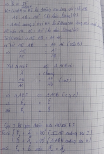 b. Kẻ HF vuông góc với AC tại . F Chứng minh AB.AE=AC.AF