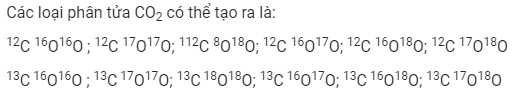 Oxi có 3 đồng vị là 16O , 17O và 18O. Cacbon có 2 đồng vị là 12C và 13C. Xác định các loại phân tử CO2 có thể tạo thành.