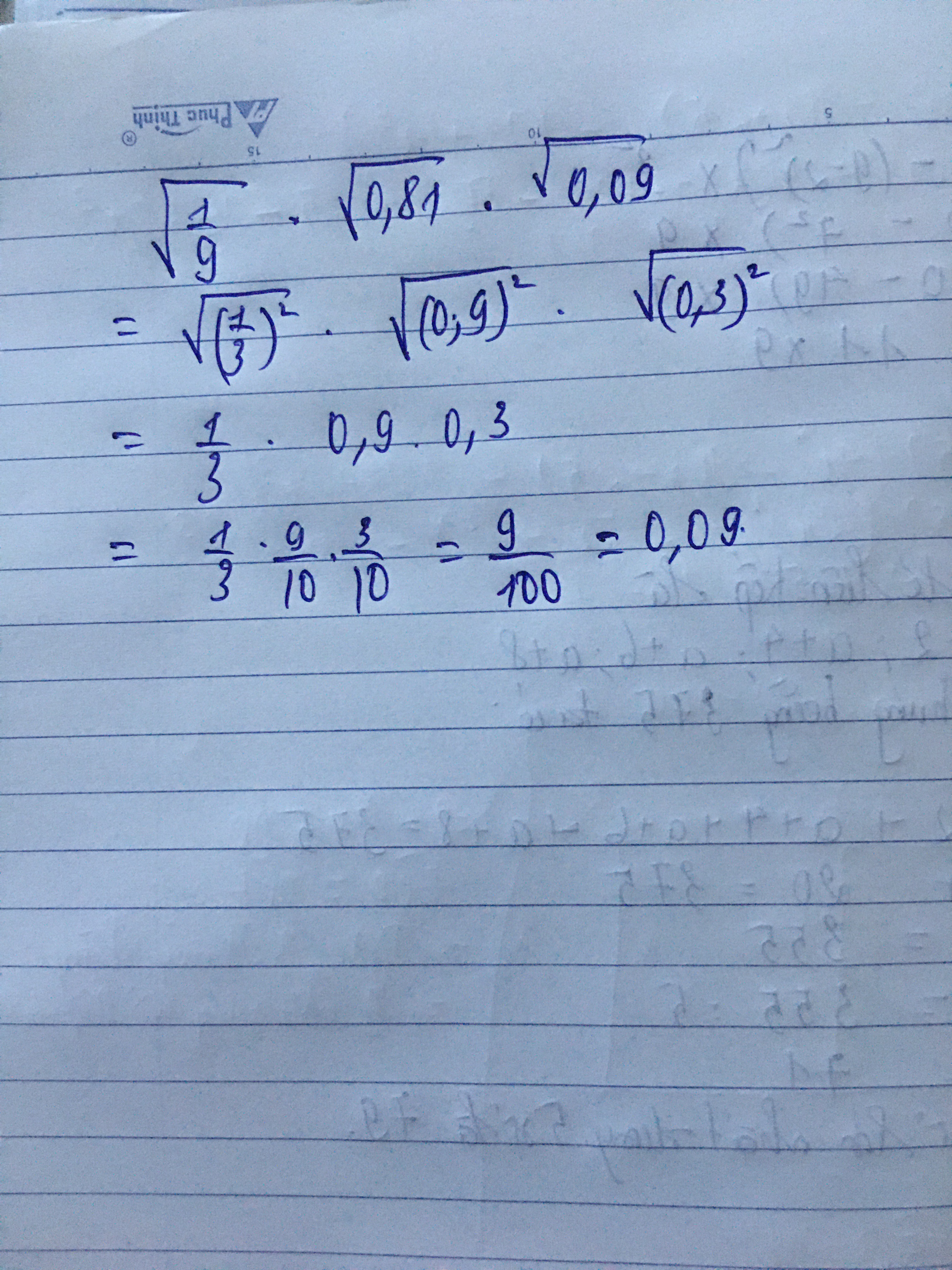Căn bậc 1 phần 9 x căn bậc 0,81 x căn bậc 0,09