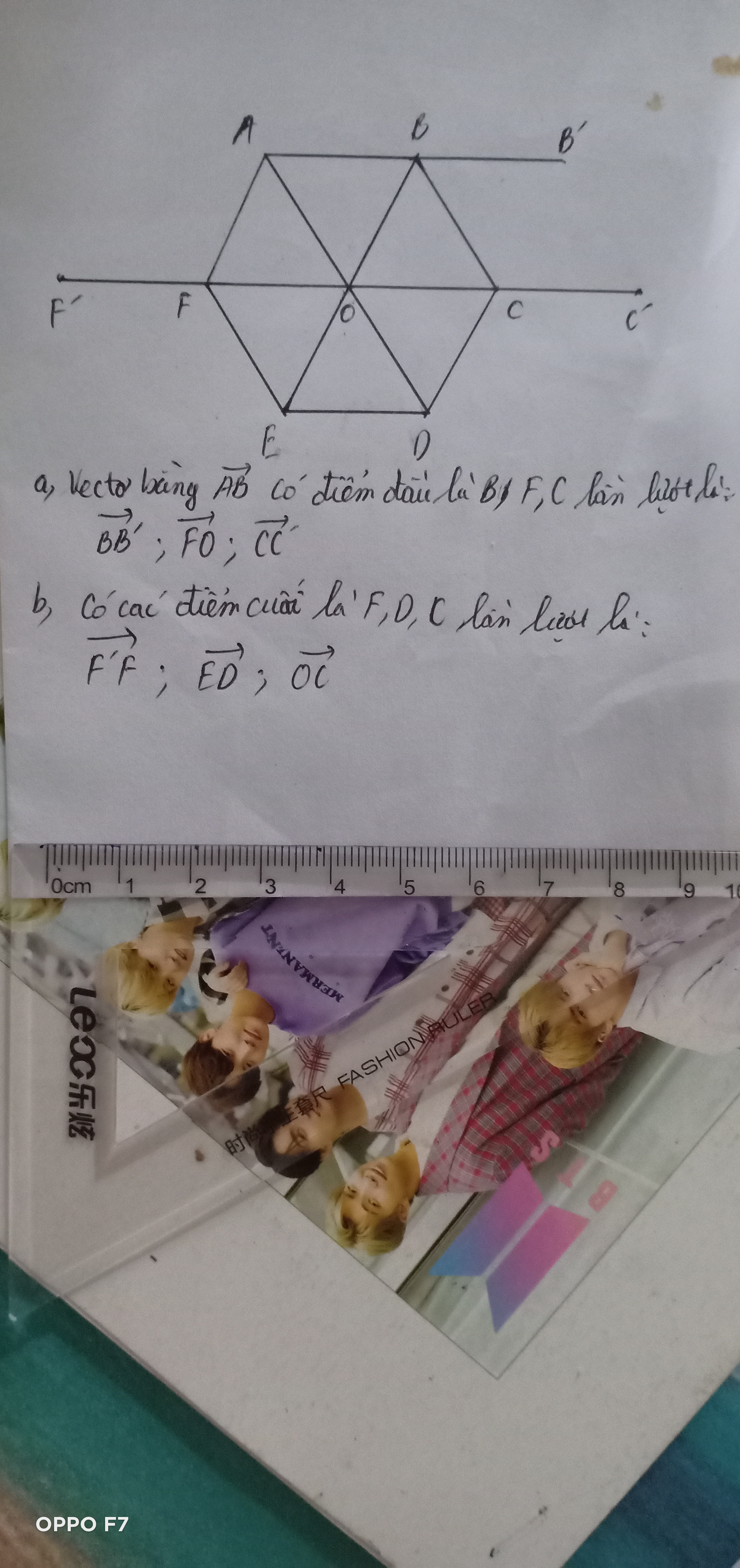 Cho lục giác đều ABCDEF.hãy vẽ các vectơ bằng vectơ AB và có: