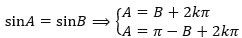 Sử dụng công thức của phương trình lượng giác sinA =sinB, ta có: