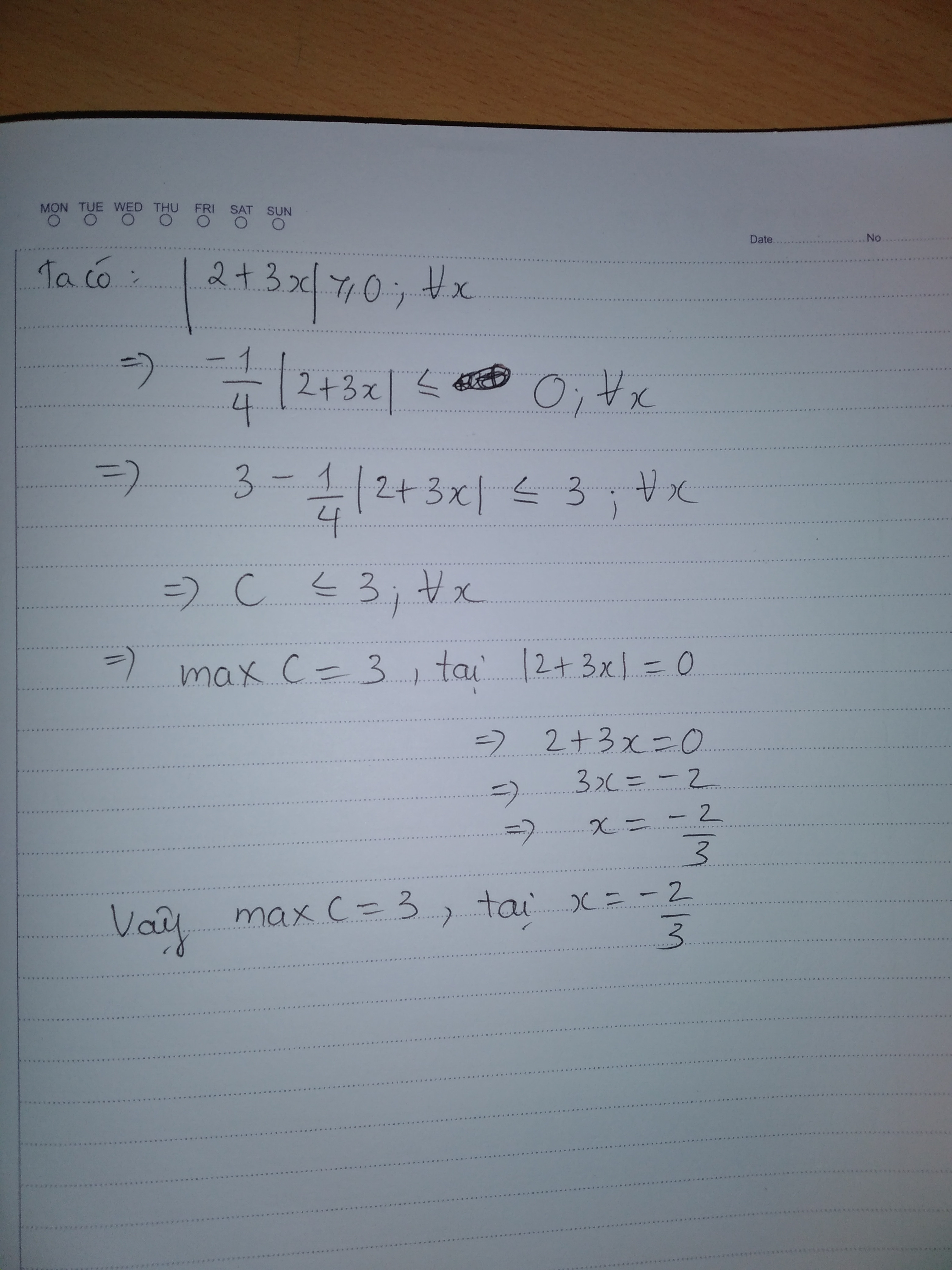 Tìm giá trị lớn nhất C=3-1/4|2+3xl