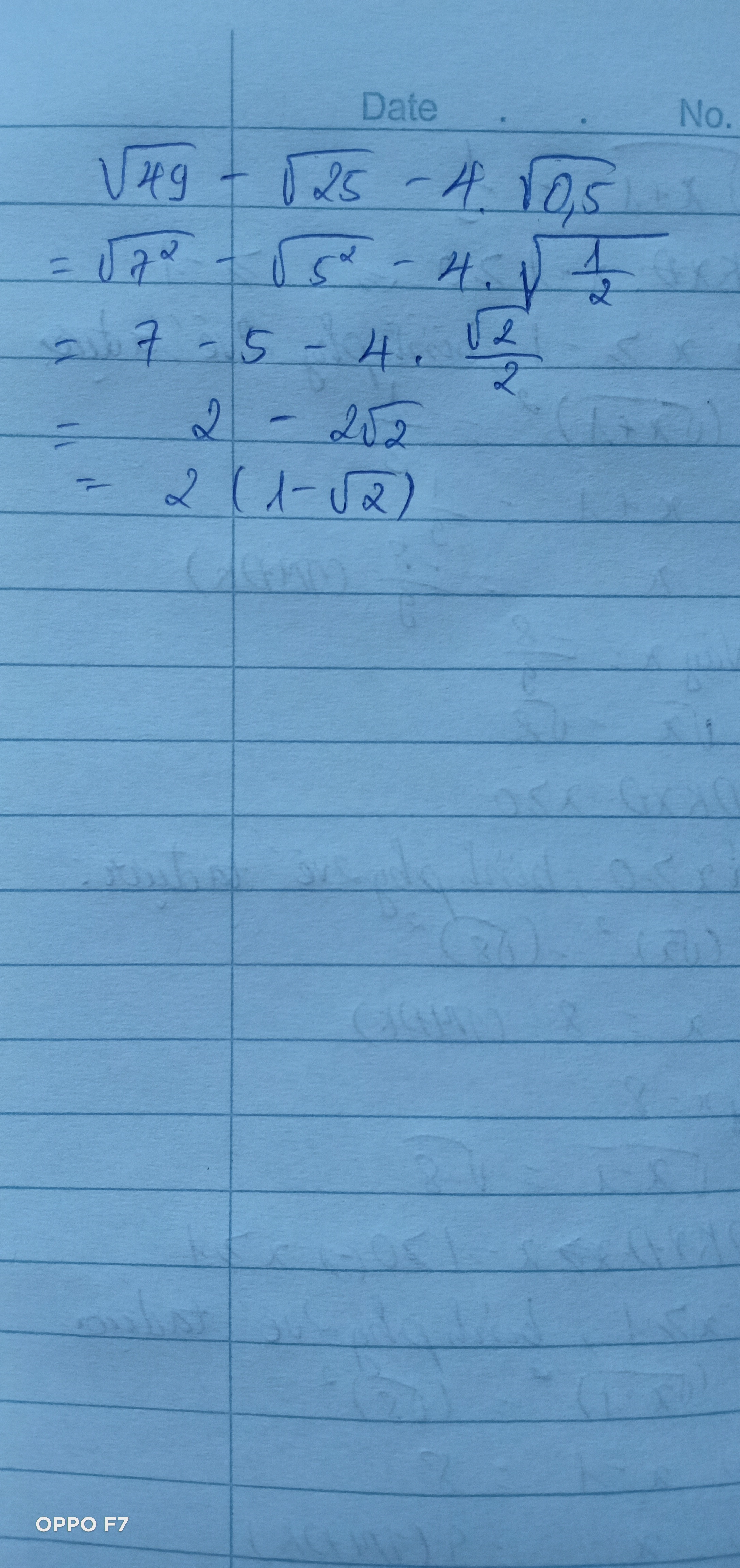 √49 - √25 -4 √0.25