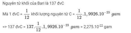 Cho nguyên tử khối của bari là 137 . tính khối lượng thực nguyên tố trên : A.mBa=2,27.10-22g ; B.mBa=2,234.10-24g ; C.mBa=1,345.10-23kg ; D.mBa=2,7298.10-21g