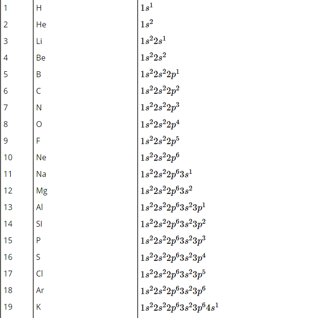 Viết cấu hình electron 20 nguyên tố từ Z=1 đến Z=20
