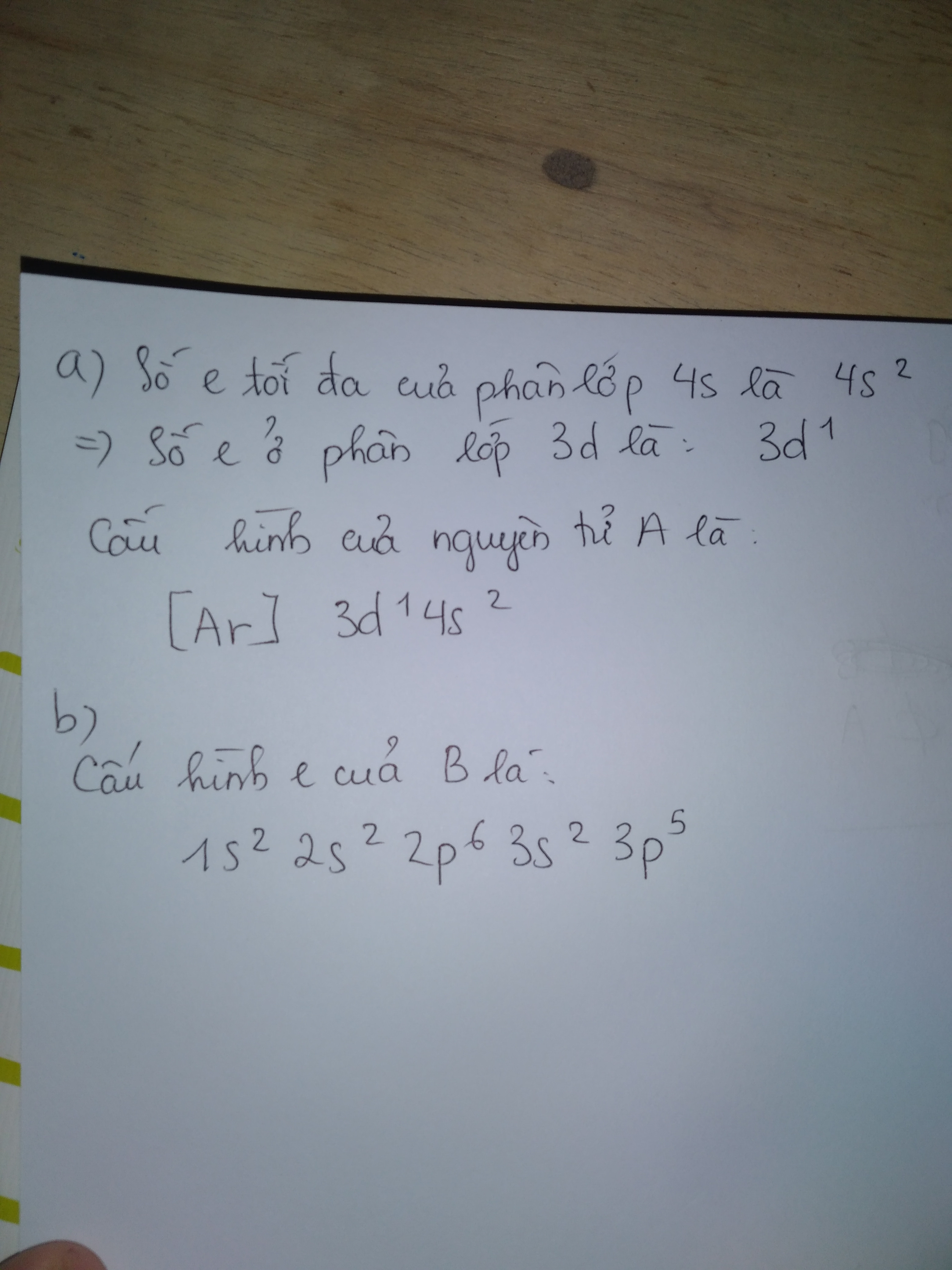 a.Nguyên tử A có số electron ở phân lớp 3d chỉ bằng một nửa số electron ở phân lớp 4s.