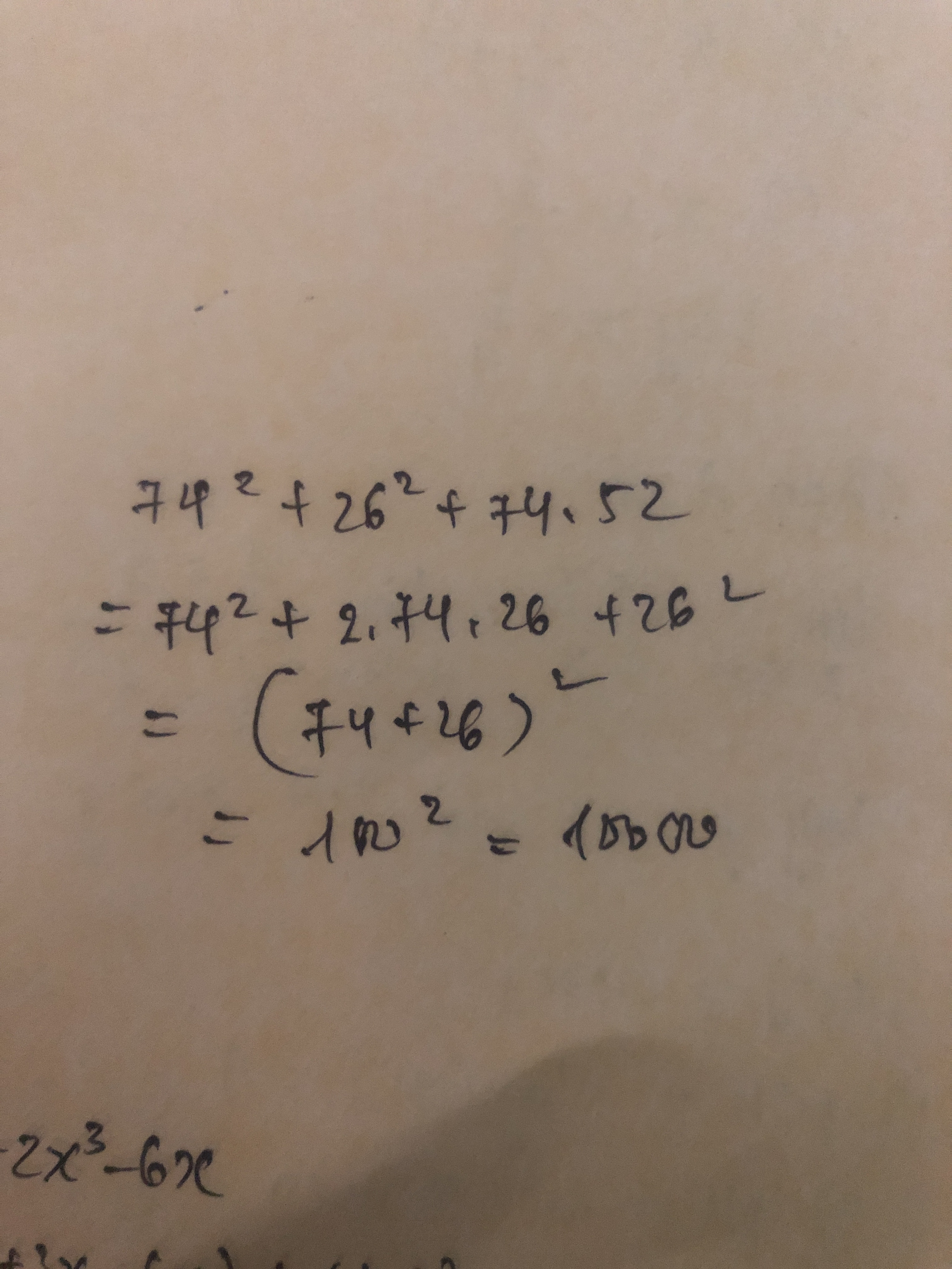 Tính nhanh: 74 ^ 2 + 26 ^ 2 + 74.52