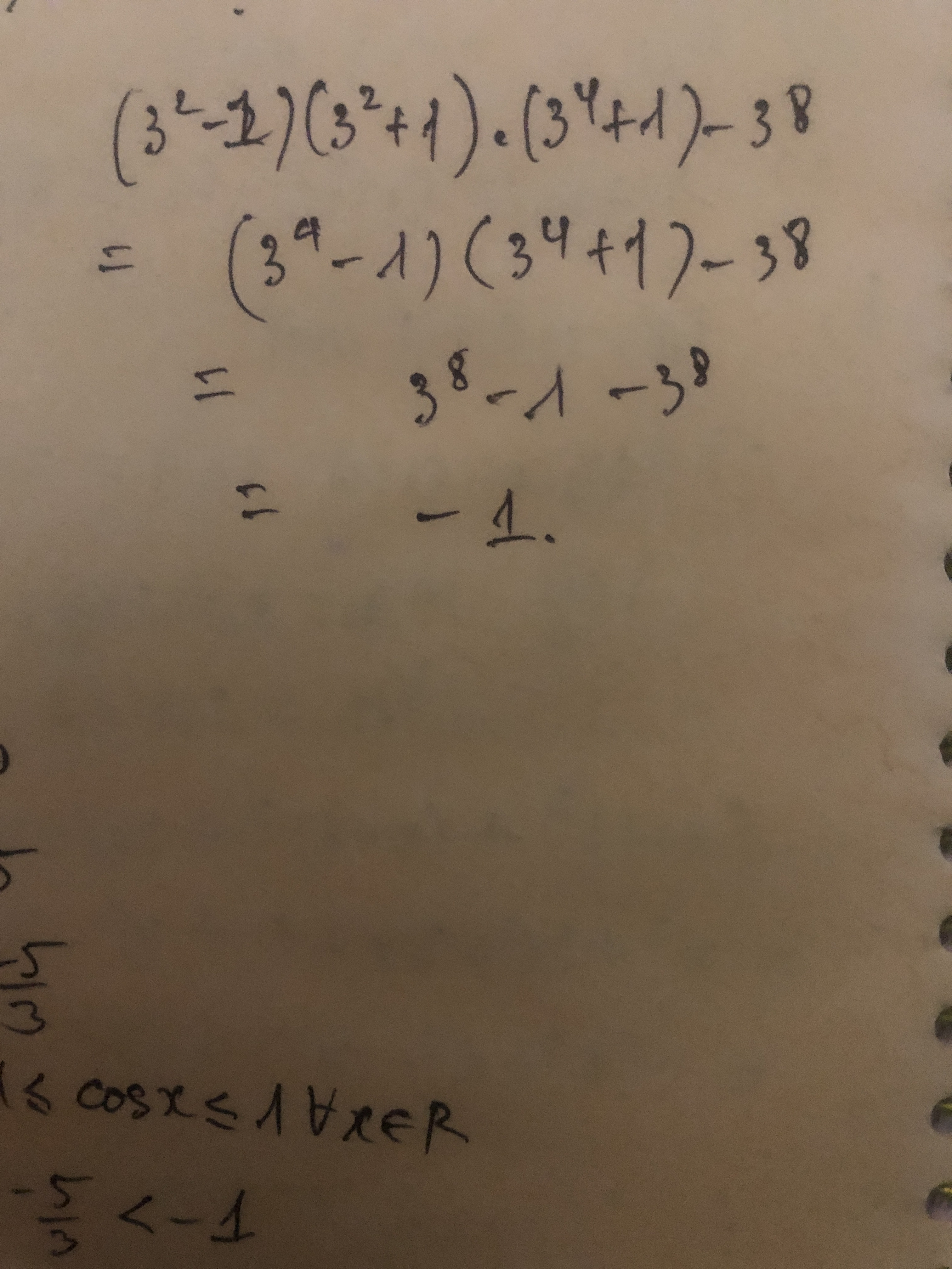 Tính nhanh: (3 ^ 2 - 1)(3 ^ 2 + 1) * (3 ^ 4 + 1) - 3 ^ 8