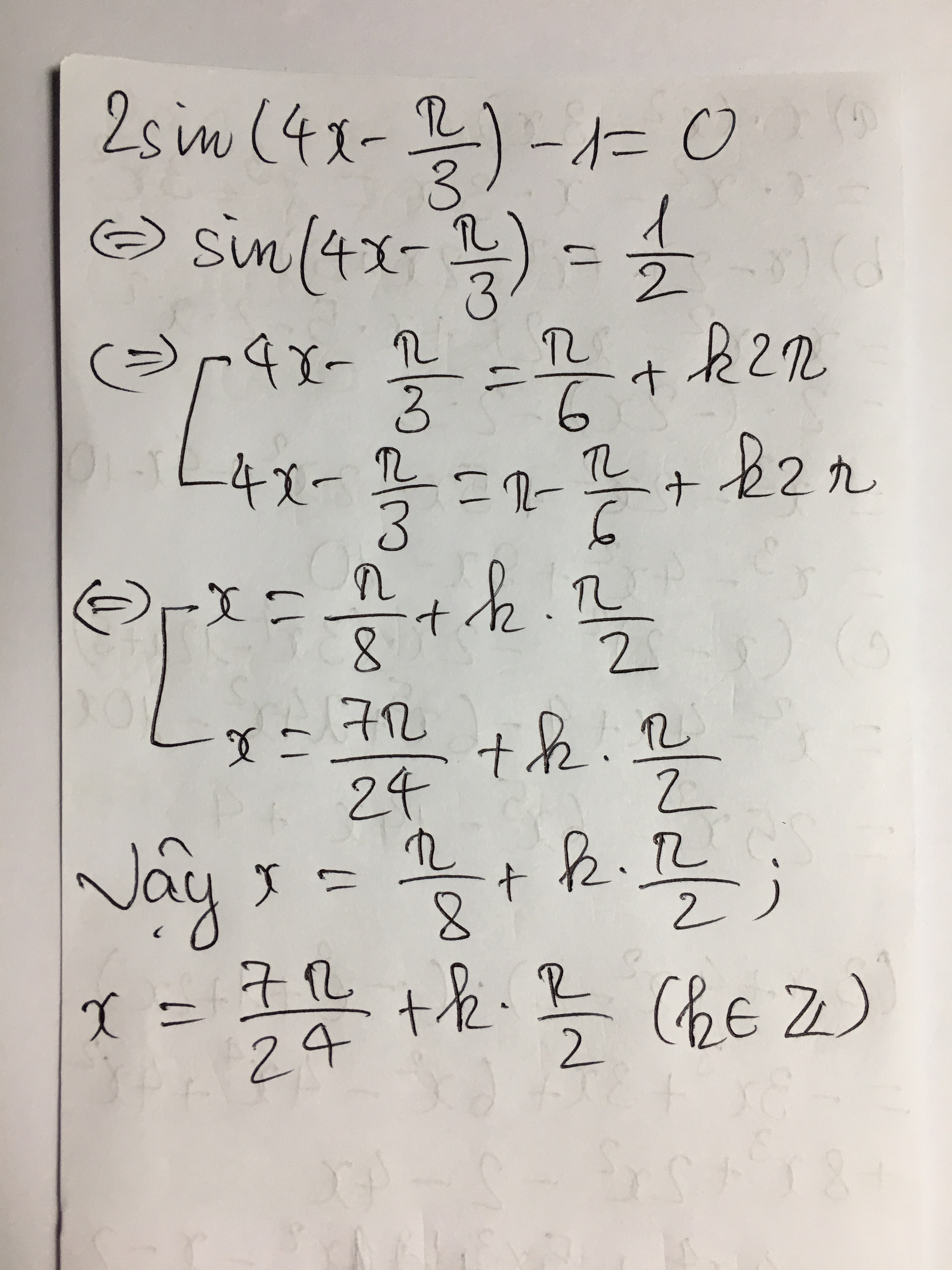 Đầu tiên bạn hãy xem 2sin (4X-π/3)=0 là 2X-1=0 thì chuyển vế đổi dấu